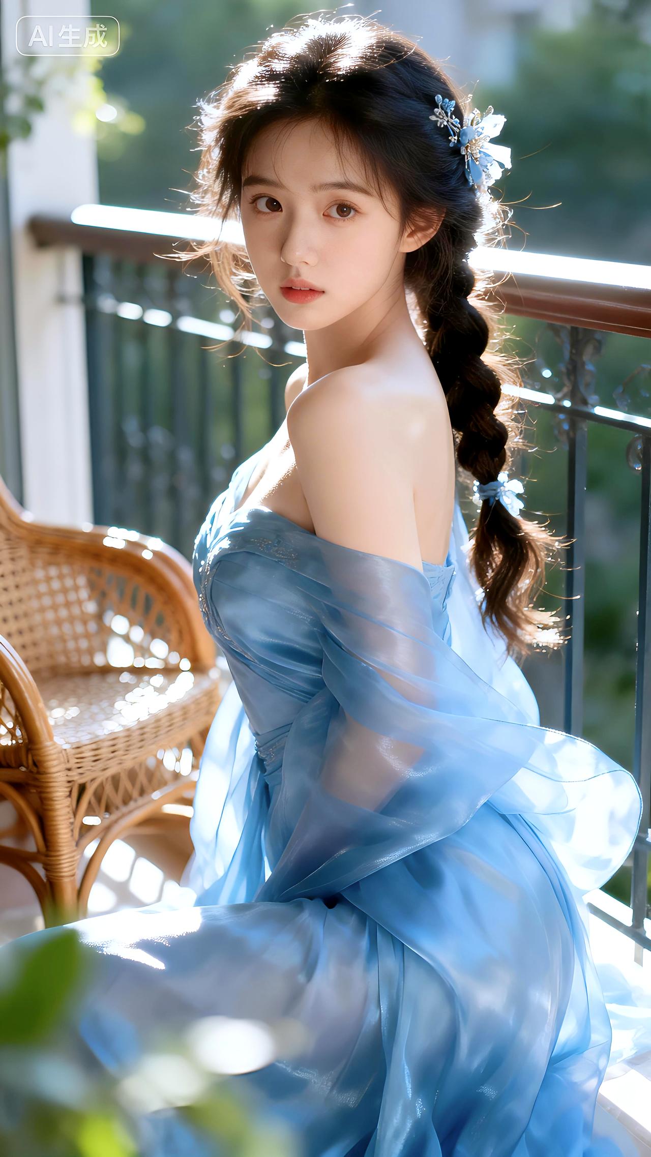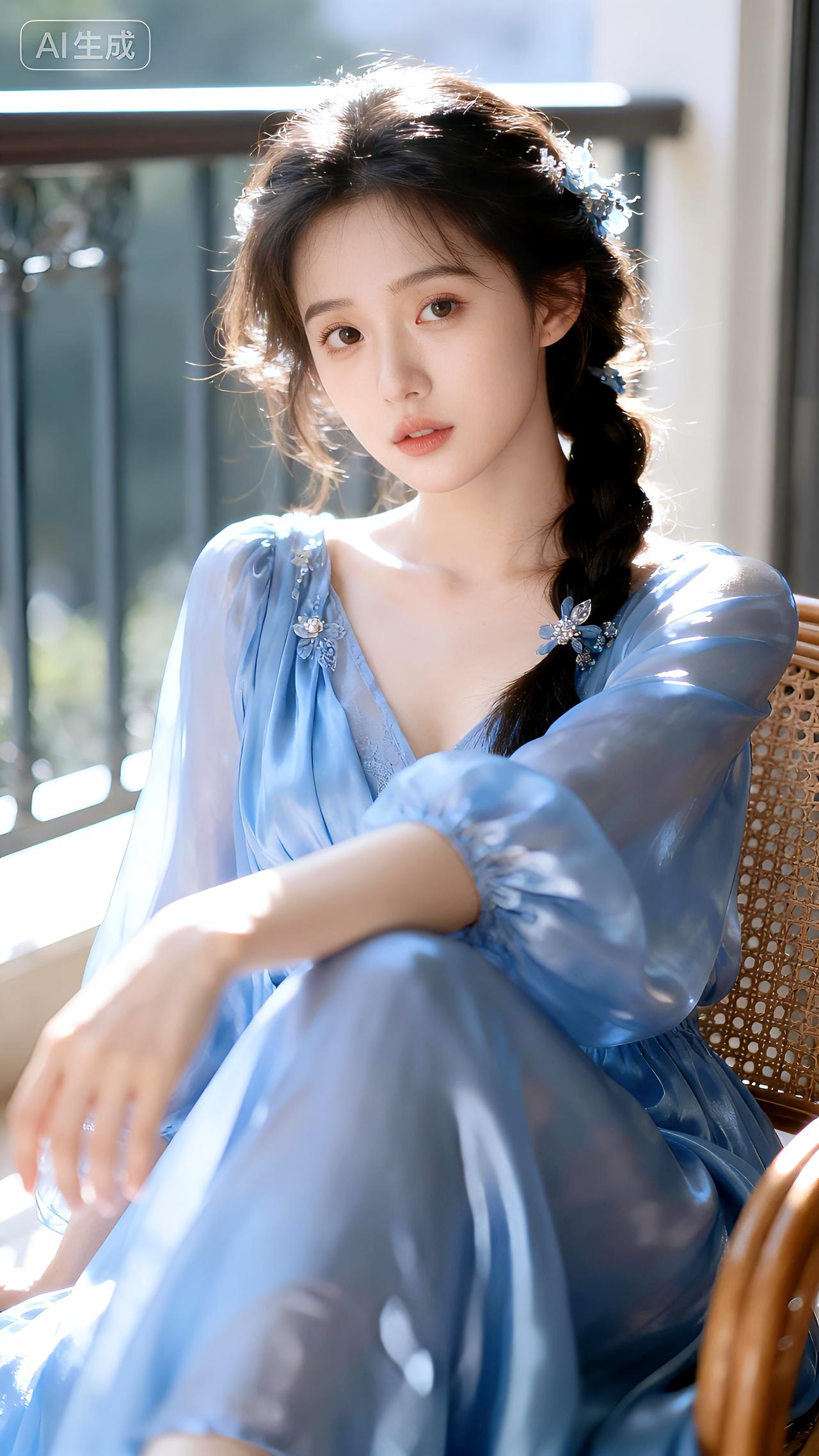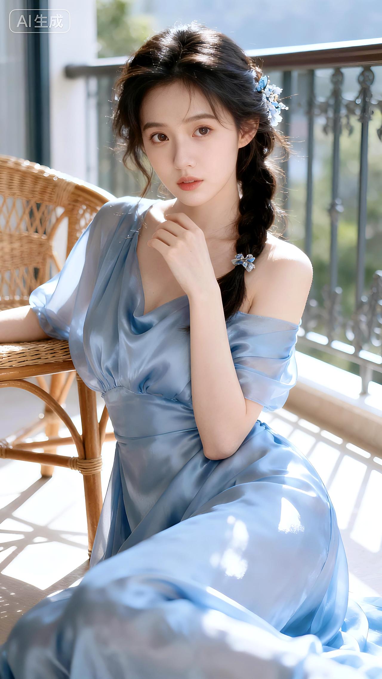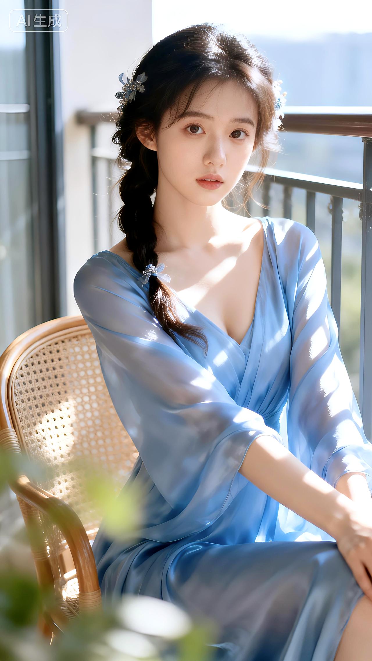 晨光在藤椅边流淌,丝裙勾勒慵懒轮廓,她凝眸时连风都变安静。清新脱俗的女孩子是什么样子的呀豆包 壁纸 写真