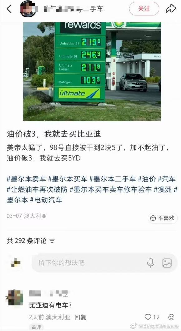 油价创数十年来最大单周涨幅还是电车香我现在开车除了高速费,几乎零成本,首先我有加