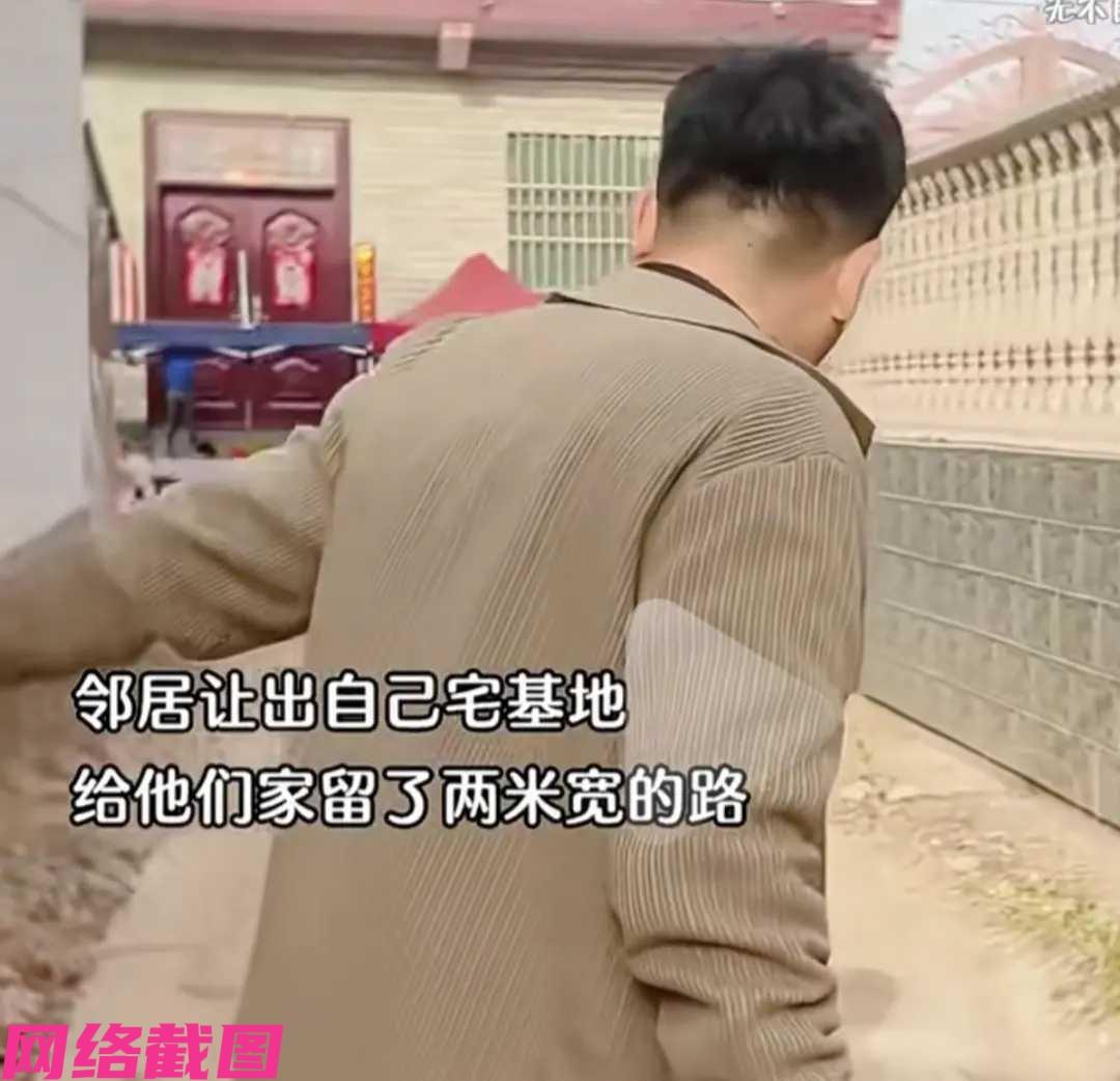 河南有男子回老家过年时,看到自家的邻居盖好了新房,还留出两米的路做通行,这让男子