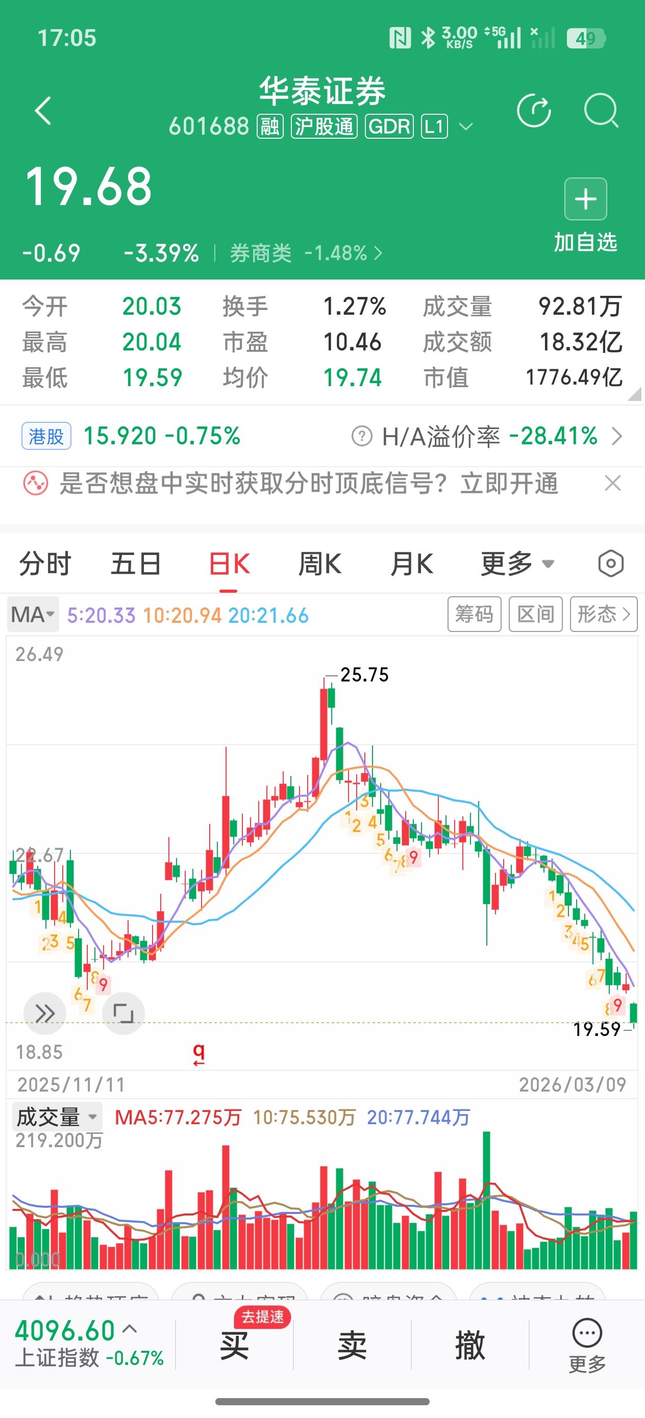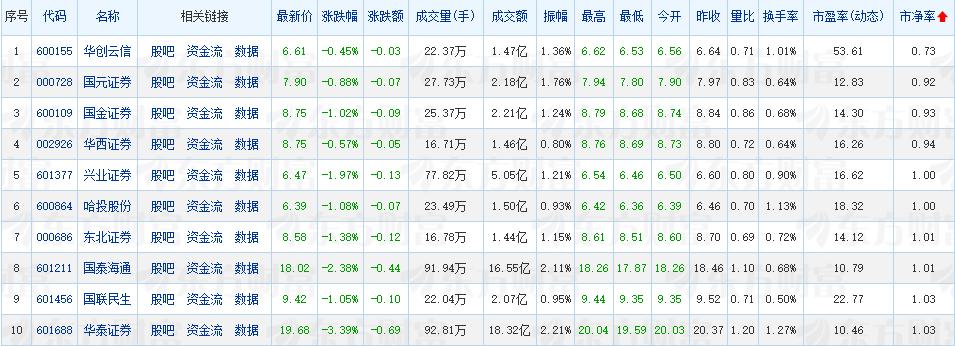 兵临城下!头部券商股国泰海通和华泰证券截止今天收盘,最新市净率分别为1.01倍和1.03倍,离破净仅一步之遥了。 国泰海通,今天收盘下跌2.38%,收盘价18.02元,华泰证券今天收盘下跌3.38%,收盘价19.68元,股价都跌的面目全非了。 在这场破净比赛中,谁会拔得头筹呢?咱大胆预测下,可能国泰海通会是头部券商股中第一个破净的。 当然,破不破净除了表明股价超跌之外,可能说明不了什么问题,如果业绩增长了,股价照样能涨回来。