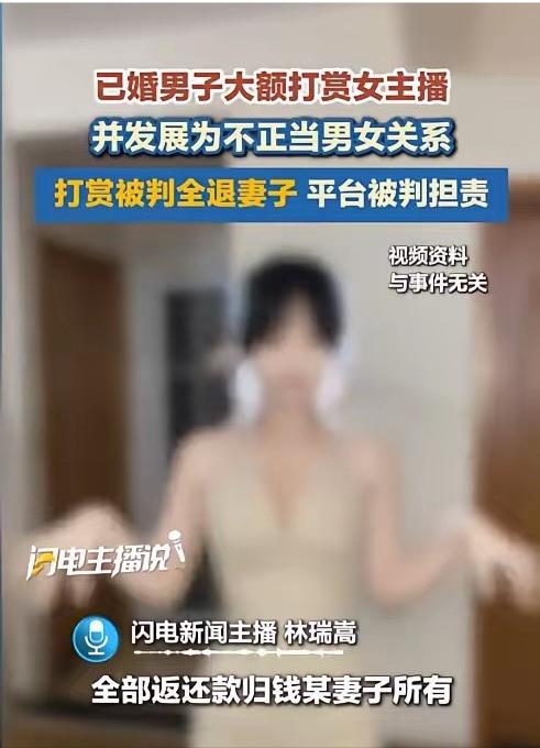 “人财两空”,江苏,女主播与已婚大哥发生不正当关系,结果被大哥的妻子发现。大哥的妻子不仅将女主播,还连带将大哥本人以及平台告上法庭,要求法院归还全部打赏款,并确认全部归自己个人所有!法院这样判! 2018 年 4 月,钱某在浏览短视频内容时进入于某的直播间,于某以直播互动为主要收入来源,为提升关注度与打赏金额,长期采用不符合公序良俗的直播方式,钱某被直播间内容吸引后持续关注,并逐步开始进行资金打赏。 两人的联系从直播间延伸至线下,同年 8 月互加私人联系方式并见面,随后确立不正当男女关系,在此期间钱某持续向于某进行大额打赏,所有支出均来自其与妻子孙某的夫妻共同财产,整个过程孙某并不知情。 按照平台的收益分配规则,用户的打赏资金会按比例在主播与平台之间拆分,于某分得其中四成,平台公司获得六成。 直到孙某发现家庭财产异常变动并核实相关记录后,才得知钱某的打赏行为与婚外交往事实,面对被擅自处分的共同财产,孙某选择通过法律途径维护自身权益。 将钱某、于某以及直播平台一并诉至法院,提出三项核心诉求,分别是确认打赏对应的赠与行为无效、判令主播与平台全额返还打赏款项、确认返还的资金归自己个人所有。 法院在审理中重点厘清三个关键问题,分别是打赏行为的法律性质、夫妻共同财产的处分边界、平台是否存在监管过错。 法院查明,钱某的打赏并非基于正常观看直播的消费需求,而是以建立和维系不正当关系为目的,本质属于无偿赠与,这种行为既违背夫妻忠实义务,也违背公序良俗,同时钱某未经配偶同意,擅自处分大额夫妻共同财产,超出日常家事代理范围,侵害了孙某的财产权利。 平台方面存在明显监管疏漏,对于主播长期存在的违规直播行为未采取有效制止措施,也未严格落实监管部门要求的消费提醒、打赏限额等制度,对损害后果的发生存在过错。 法院依据民法典中关于违背公序良俗的民事法律行为无效、夫妻对共同财产享有平等处理权等规定,结合婚姻家庭相关司法解释作出判决。 认定钱某的赠与行为无效,于某需全额返还其取得的打赏款项,平台因监管不力需在其收益范围内承担相应返还责任,最终确认全部返还款项归孙某个人所有。 这起案件并非简单的财产返还纠纷,而是对网络直播生态、婚姻家庭财产保护、公序良俗维护的多重回应。 近年来类似案件频发,司法裁判始终保持一致尺度,区分正常直播消费与基于不正当关系的赠与,明确主播与平台的责任边界,既保护网络直播行业的正常经营,也遏制借直播之名行不当利益输送之实的行为。 案件也提醒公众,夫妻共同财产受法律严格保护,任何一方无权擅自大额处分,网络直播参与主体均应遵守法律规定与公序良俗,避免因越界行为承担法律责任。