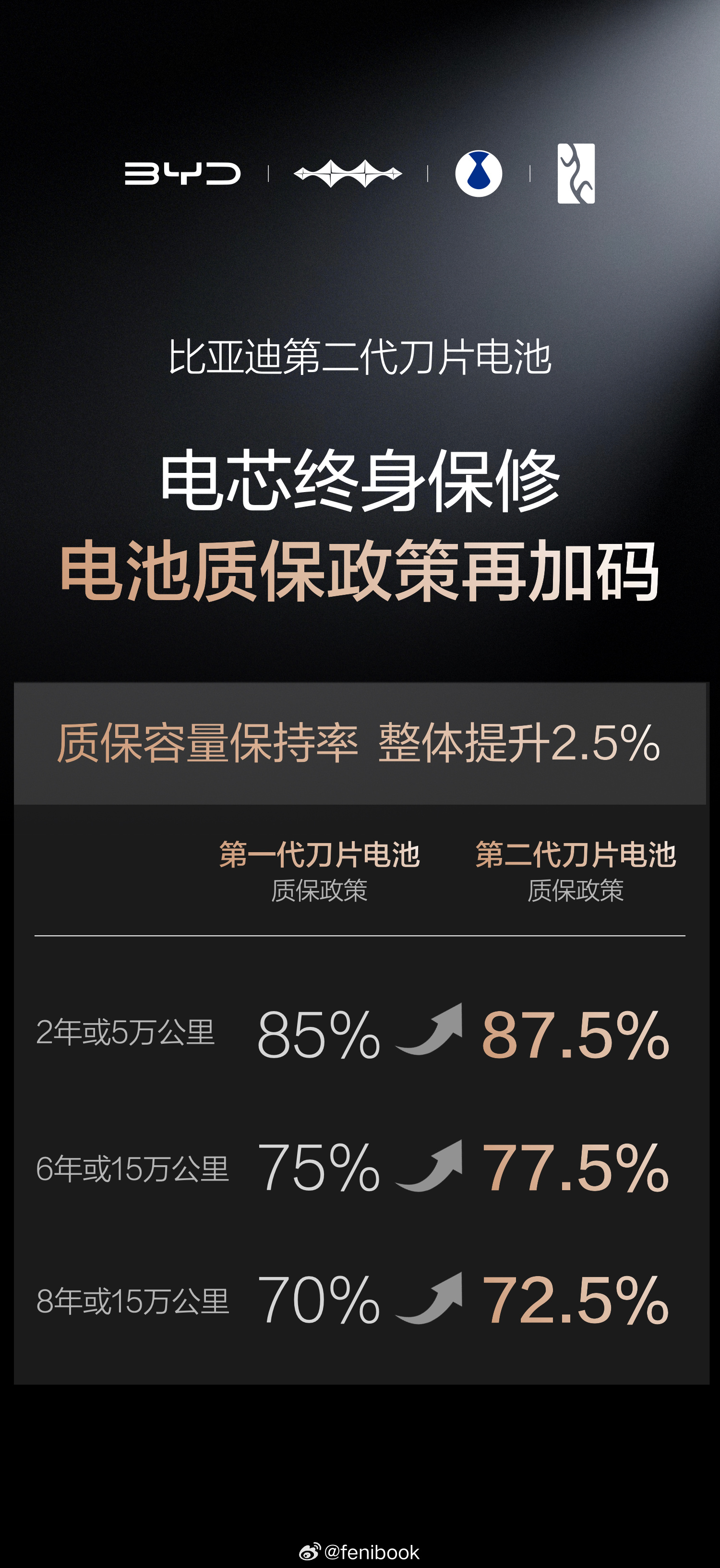 同时,比亚迪还升级了电池质保政策:当电池容量低于77.5%即可免费更换,电芯依旧提供终身保修。