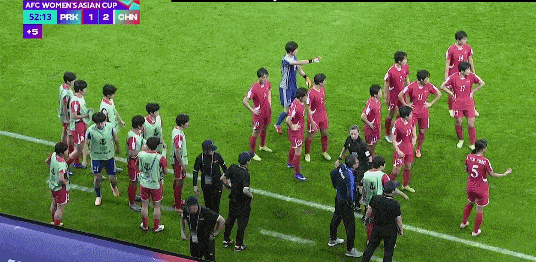 亚洲杯小组赛上半场中国女足2:1逆转朝鲜女足暂时领先。朝鲜女足31分钟禁区内打门得手。陈巧珠34分钟禁区前沿抽射扳平,王霜补时阶段补射将比分反超。朝鲜女足对判罚不满迟迟没有开球。当值裁判结束上半场比赛。