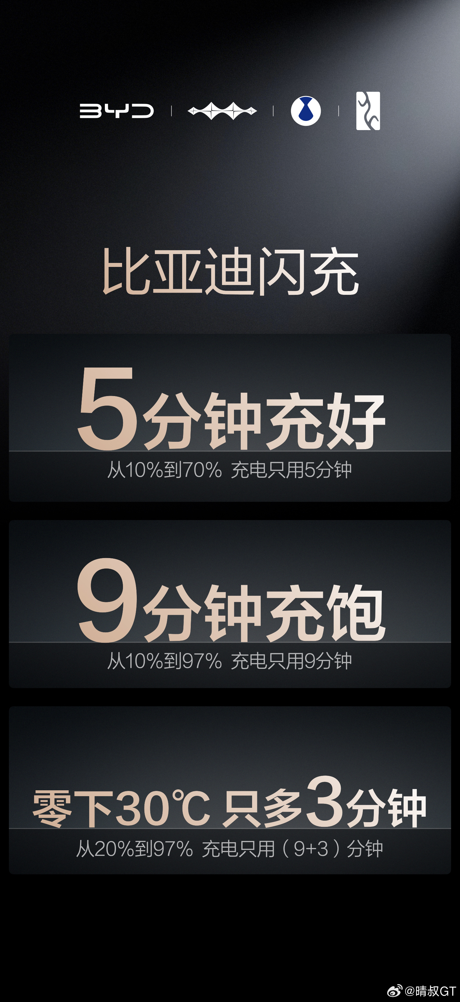 硬核闪充技术树立行业新标杆 比亚迪第二代刀片电池及闪充技术发布会!比亚迪比亚迪第二代刀片电池及闪充技术在深圳亮相比亚迪第二代刀片电池 比亚迪第二代刀片电池,闪充不影响电池安全。 得益于科技创新,比亚迪闪充带来的产热低且散热佳,对电池寿命的影响微乎其微。既充得快,又很耐用,更安全!【500次闪充循环后,边闪充边针刺试验】:第二代刀片电池,500次闪充循环后,边闪充、边针刺,没有发生热失控、没有冒烟起火。500次闪充循环,就是差不多开了30多万公里,按私家车一年约两万公里行驶里程来算,相当于电池用了15年,依旧很安全!该试验证明了,长期用闪充,也不会影响电池安全!【热扩散试验】:新国标要求,电池包因内部短路引发热失控后,不起火、不爆炸。新国标标准是触发1节电池热失控,而第二代刀片电池挑战同时触发4节电池短路,周围的电芯依然保持正常温度,没有引起热扩散,没有起火、没有爆炸!第二代刀片电池以超越新国标标准,证明其在极端情况下的安全性。【底部撞击试验】:新国标新增一项“底部撞击试验”,检验电池包刮底时的安全性。第二代刀片电池,在新国标的标准基础上,成功挑战10倍新国标撞击能量的底部撞击试验,电池不起火、不爆炸。证明了在极端场景下,若车辆磕底导致电池包破损,第二代刀片电池依然安全。