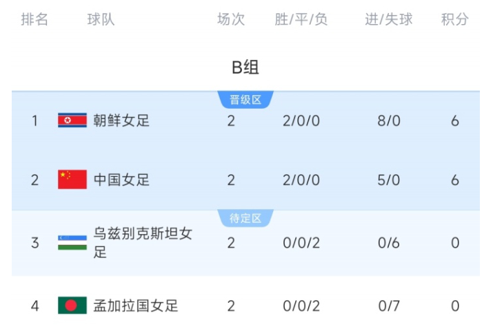 如果比分保持到最后,中国女足将以B组第1出线,对阵C组第2,该组球队包括日本女足、中国台北女足、越南女足、印度女足。