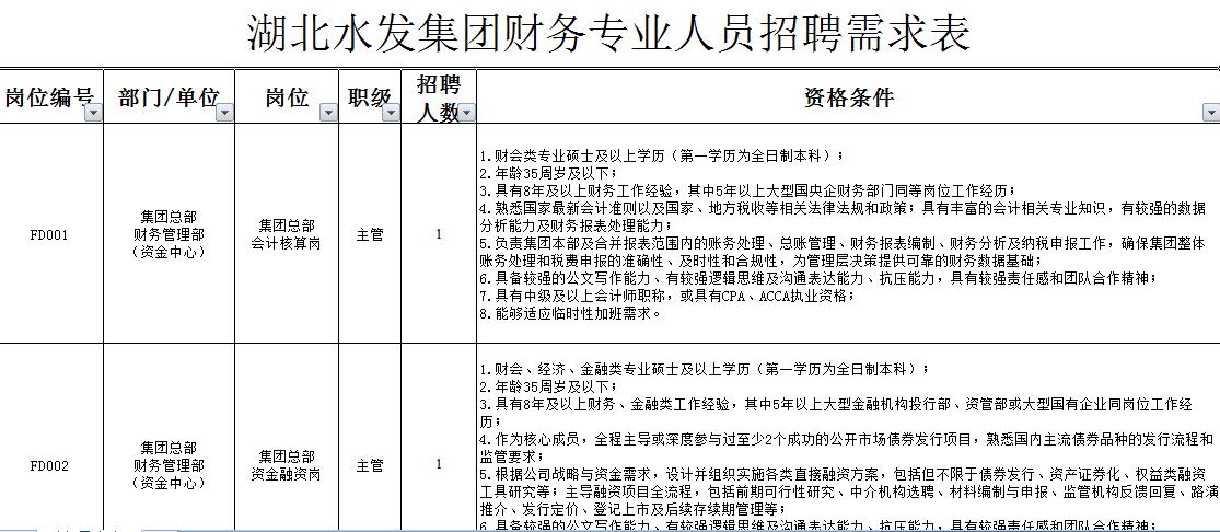 【招聘】襄阳有岗,国企湖北水发集团现面向社会公开招聘财务专业人员13名现面向社会公开招聘财务专业人员13名