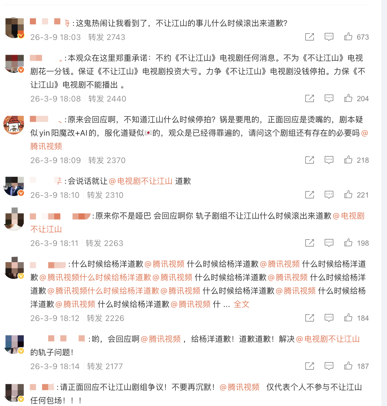 张凌赫粉丝、杨洋粉丝、杨紫粉丝大闹腾讯视频转发区
