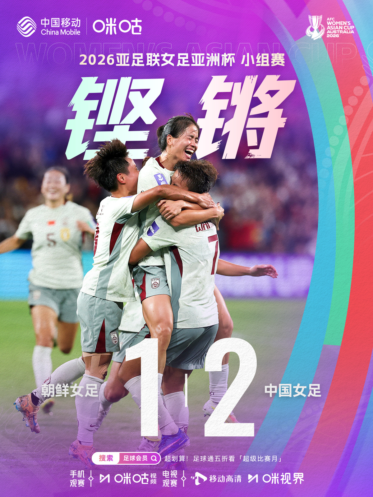 🐦🔥 中国女足头名出线🔥 战胜朝鲜晋级8强⚔️ 1/4决赛将战C组第二👀 #上咪咕看女足亚洲杯# 网页链接