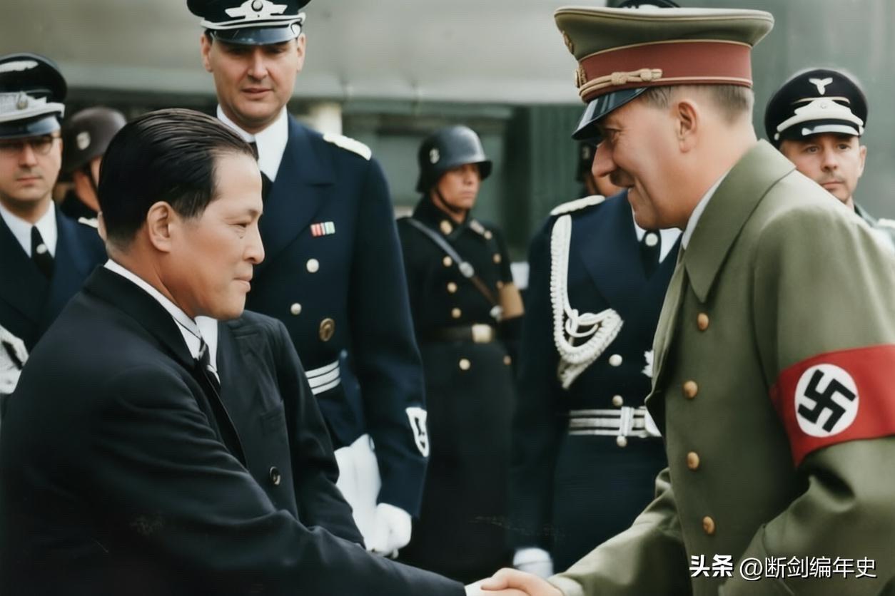 日本驻德国大使大岛浩与纳粹德国元首希特勒会面。大岛浩是促成德意日三国轴心同盟的关键人物,他深受希特勒影响,对纳粹德国抱有强烈认同,甚至在战败30年后仍在家中悬挂与希特勒的合影。他作为日本驻德大使期间,积极在日本与纳粹德国间搭建外交桥梁,推动了轴心国的形成,这一行为客观上加速了日本的对外扩张进程,也加深了二战的灾难程度。 历史 历史老照片 二战 德国