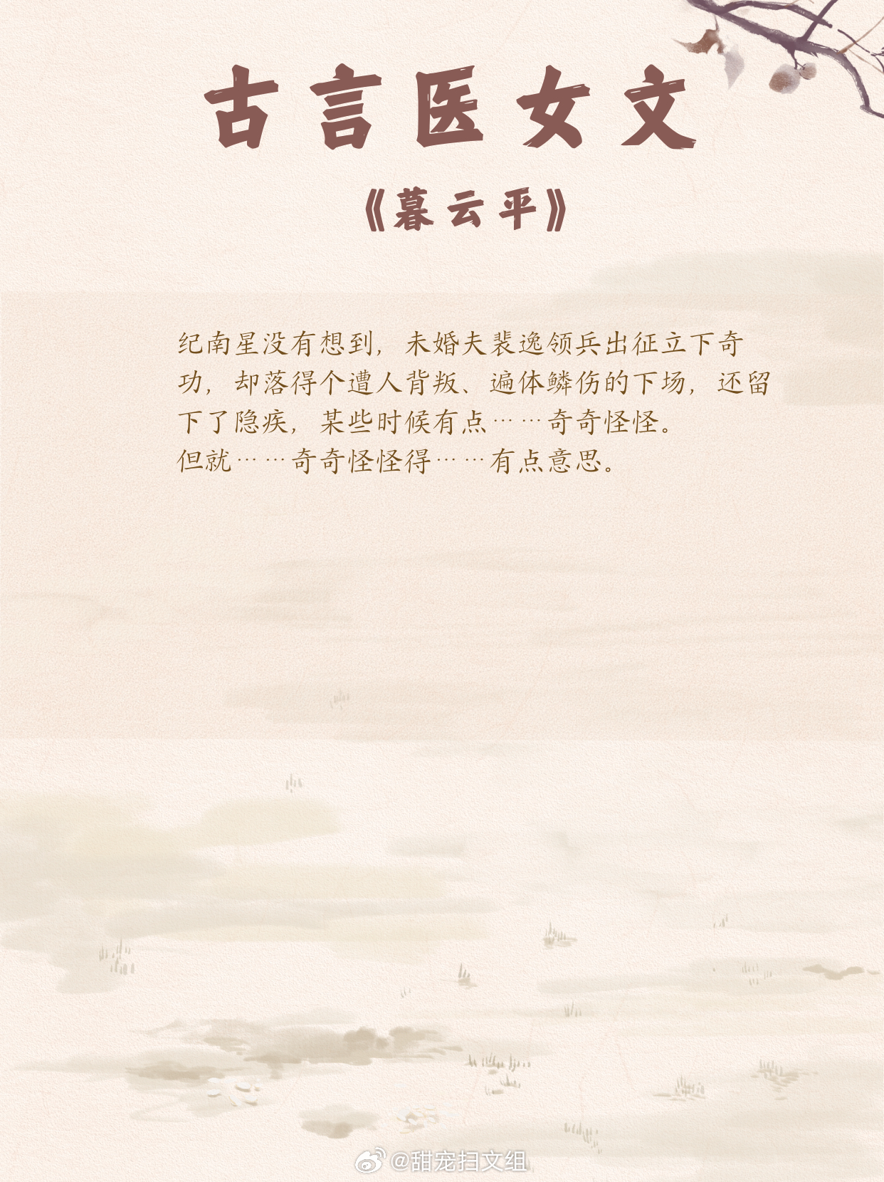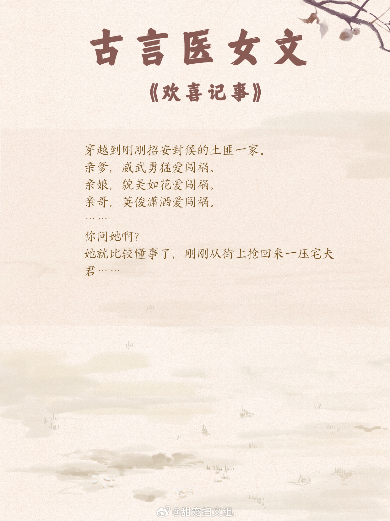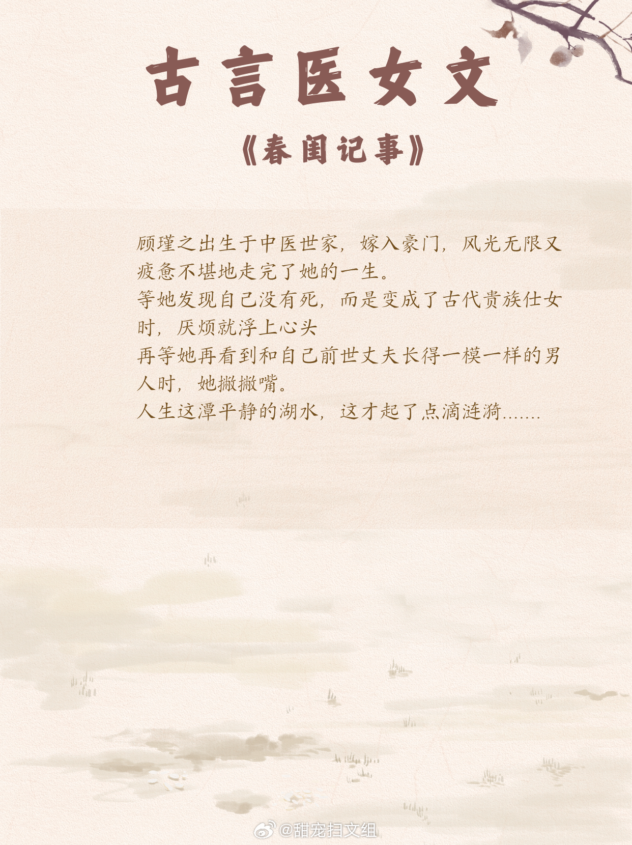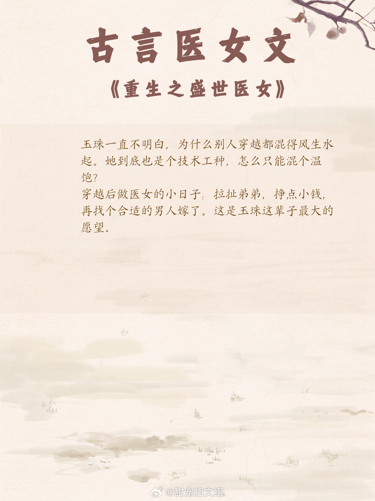 古言医女文,女主凭医术打破困境,逆风翻盘,开启传奇逆袭路!1. 《欢喜记事》 作者:木嬴2. 《古代小户女》 作者:竹笋君3. 《医路杏花》 作者:康素爱罗4. 《金鱼尾》 作者:Tracy5. 《瑶衣》 作者:望烟6. 《游医》 作者:爱打瞌睡的虫7.《春闺记事》 作者:15端木景晨8.《重生之盛世医女》 作者:绣锦9.《暮云平》 作者:凌星尘兜兜转转还是这些小说好看 这小说真的超绝