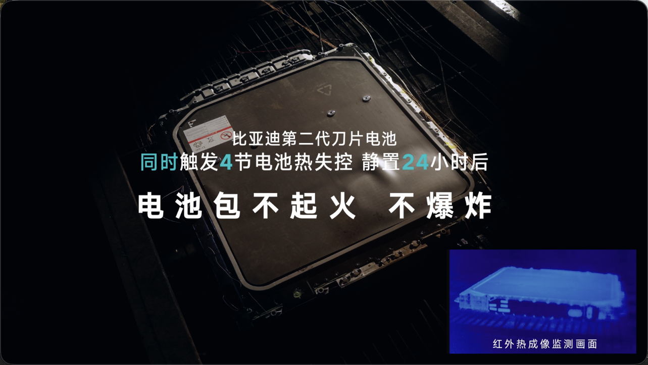 凭借一系列突破性技术,比亚迪第二代刀片电池不仅重新定义了动力电池的安全标准,也用硬核闪充技术树立行业新标杆,为新能源车主带来更可靠、更耐用的用车体验。散试验中,新国标要求触发1节电池热失控,不起火不爆炸即可;而第二代刀片电池挑战同时触发4节电池短路,周围电芯依然保持正常温度,未引发热扩散,无起火、无爆炸,以超越国标的表现证明极端情况下的安全性。