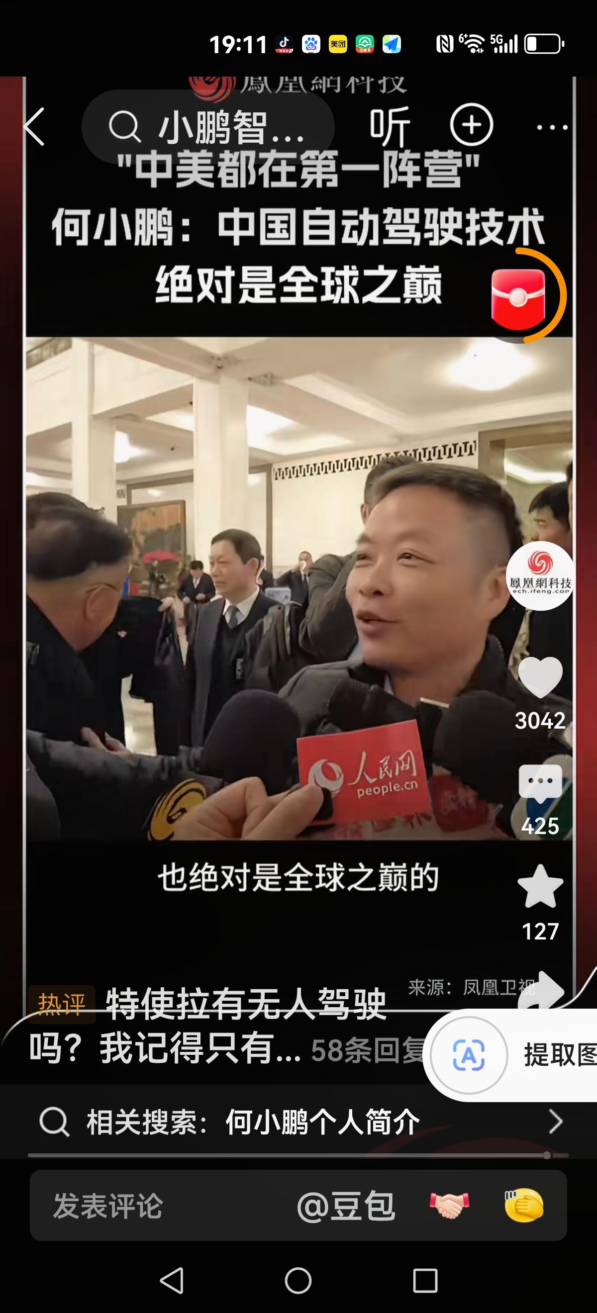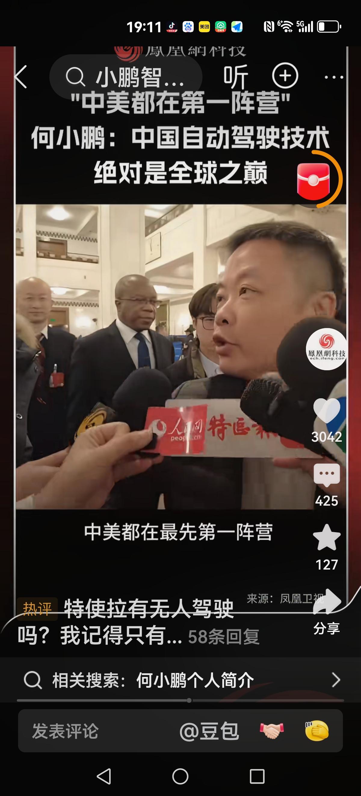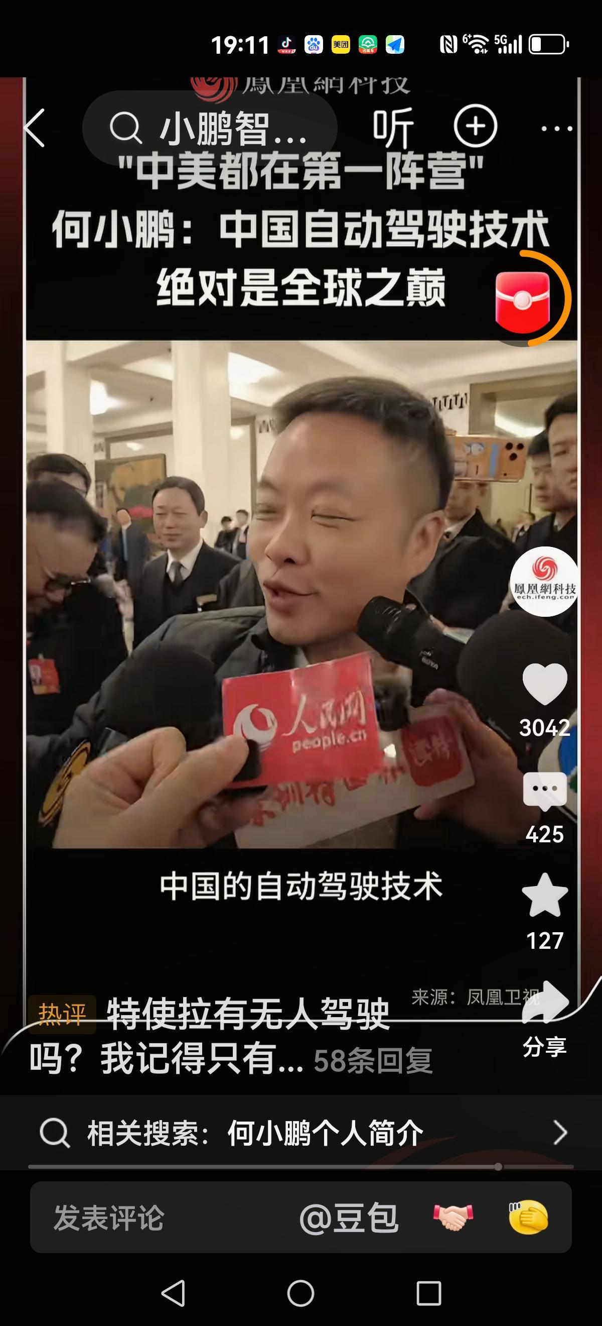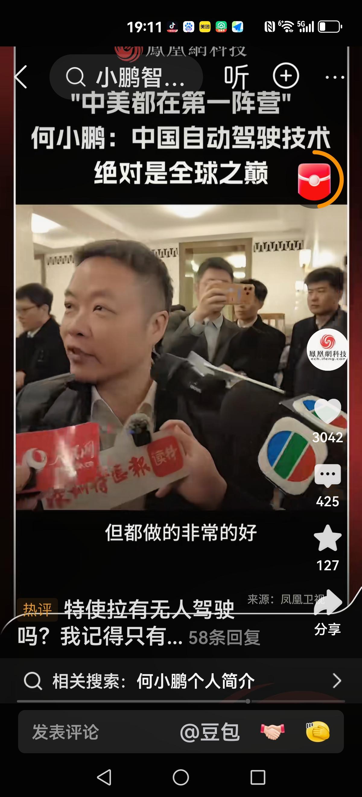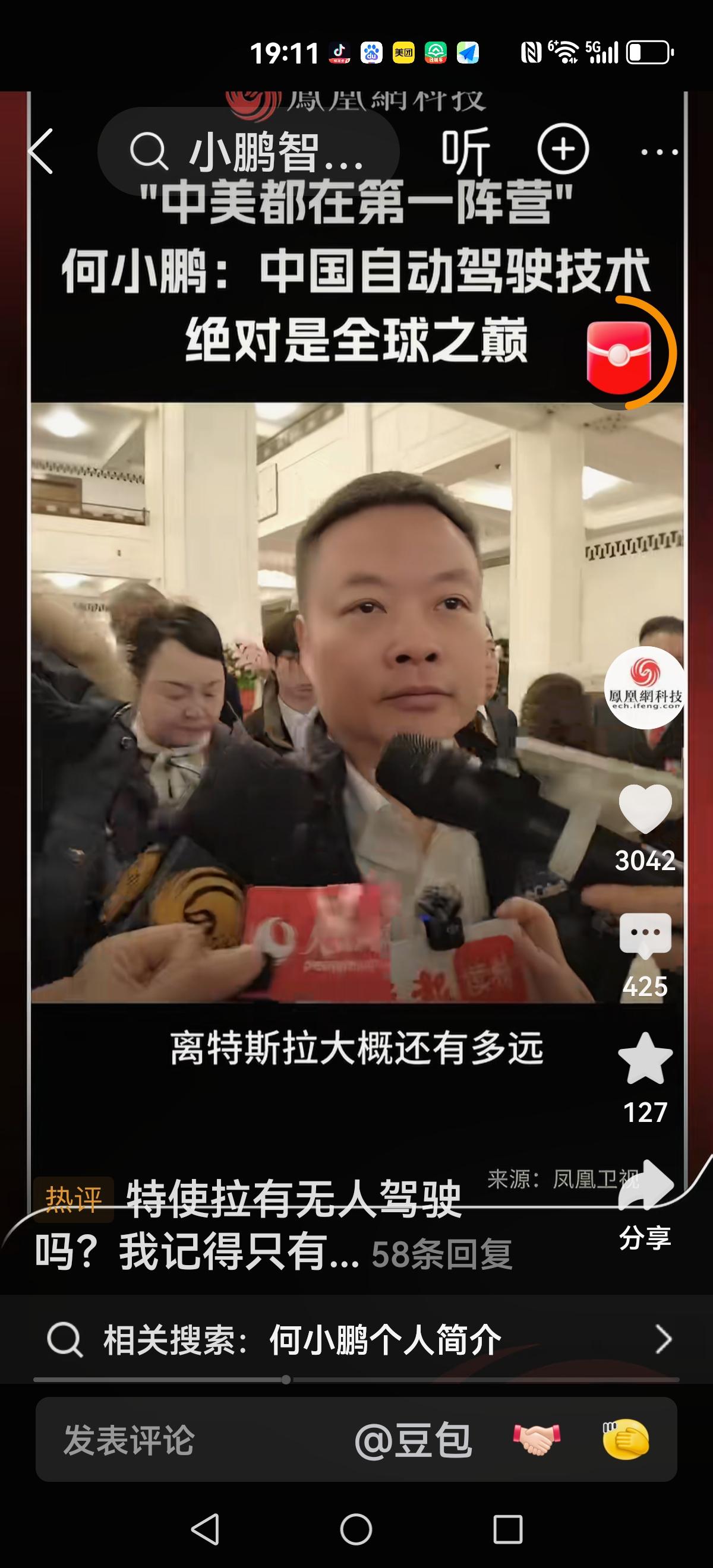 【特斯拉还没有全部自动化】 记者问:特斯拉是不是全面自动驾驶。 回复:还没有,在路上 记者:我们和特斯拉还差多远 回复:中美都在第一阵营,差不多 记者:没有差距? 回复:要相信我们的自动驾驶也是很牛的,绝对是全球之巅。 看来与特斯拉没有太大差距,几乎在同一起跑线。加油