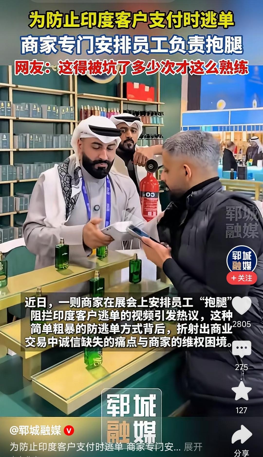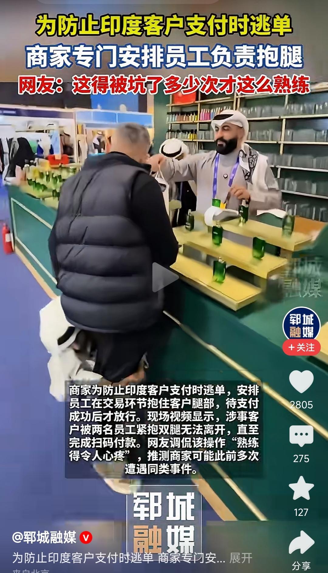 中东土豪,为防止三哥“零元购”,发展出“抱腿” 业务! 那抱腿,就是字面意思,一个人抱住印度人大腿,防逃单! 三哥在国际上出名了!一个三哥,三人严防死守!一人抱腿,一人抓领口,一人手持灭火器 敢跑,就薅他、摔他、喷他!三保险! 这就是口碑,这就是信誉,这就是印度人的基本操作!