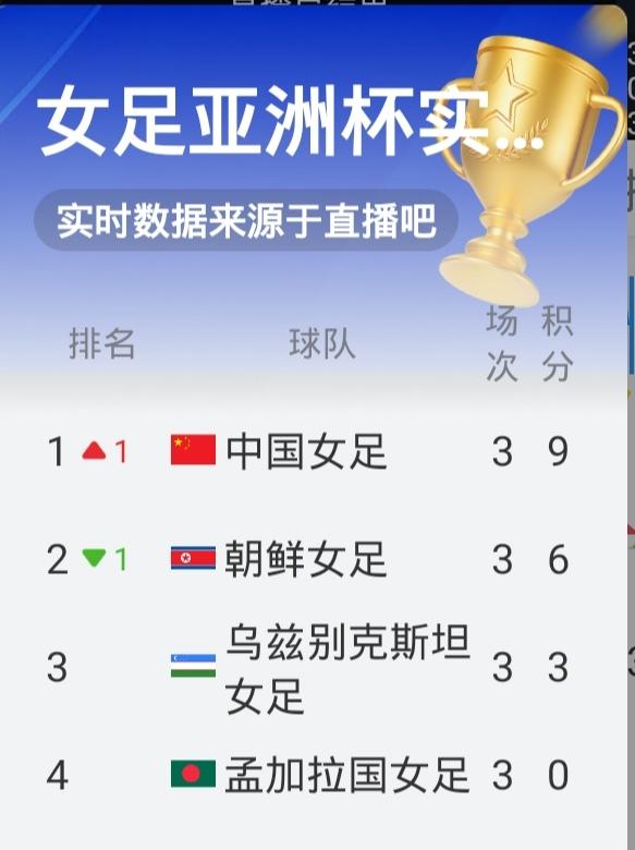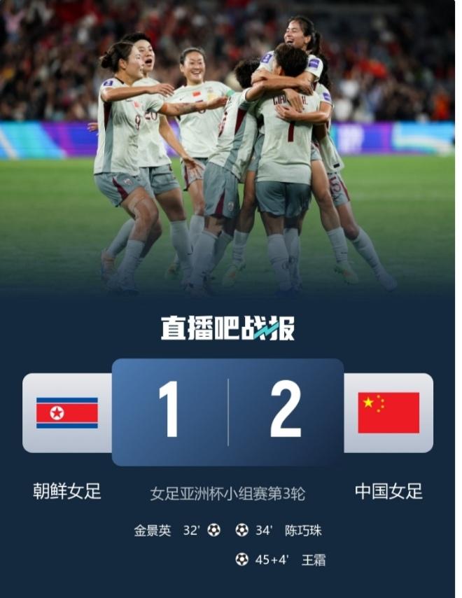 中国女足姑娘们在“担忧”中拿到小组第一,为你们点赞。 女足亚洲杯第三轮,中国女足挑战朝鲜队。 中国女足在小组赛前两场的表现并不尽如人意。 朝鲜女足和中国女足最近6次交锋取得了5胜1负的战绩,最近三次全胜。另外,朝鲜女足是U17女足和u20女足世界杯的冠军原班人马,世界排名第9。而且小组前两场进8球暂列小组第一。这样的实力,中国女足能否战胜朝鲜女足取得有利位置不免令人担忧。 然而,比赛开始后,女足姑娘们展现出了意想不到的一面。 前场球员丢球和积极反抢,中场球员拼力拦截,后场球员敢于插上。老将王霜利用娴熟技术和丰富经验一次次的传导,并且坚持到最后;小将邵子钦通过跑位和头球优势搅乱朝鲜队的后防线,边后卫陈巧珠积极插上打入振奋人心扳平球。张程雪防守、助攻来回奔跑拼劲全力。在朝鲜队犯规动作不断(蹬踏、胳膊击打)、裁判判罚尺度过轻的不利情况下,姑娘们面对强敌,敢打敢拼,毫不畏惧,以2:1啃下了“硬骨头”。让我们看到了“铿锵玫瑰”再次绽放。 祝贺中国女足,姑娘们好样的,为你们点赞[赞][赞][赞]