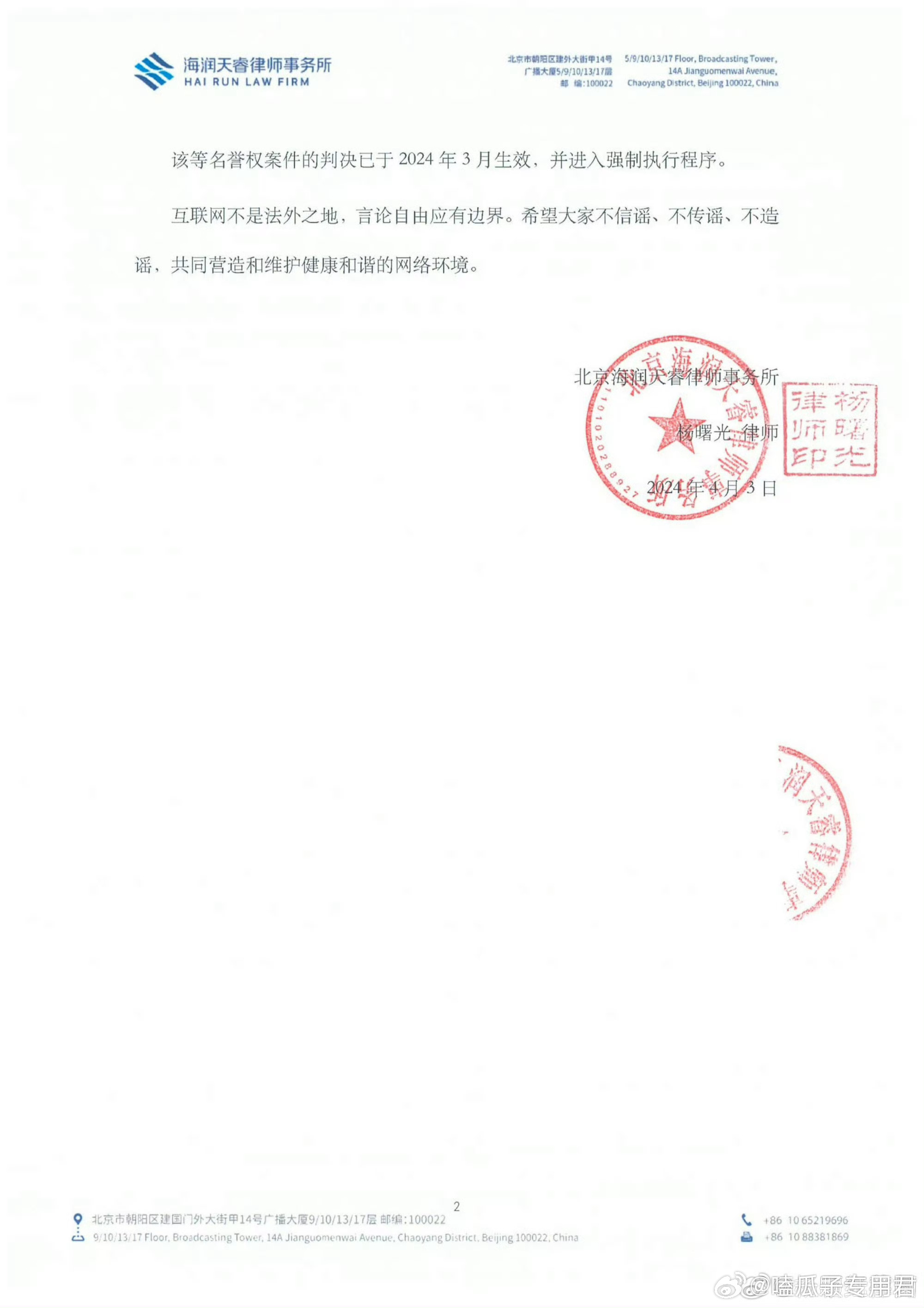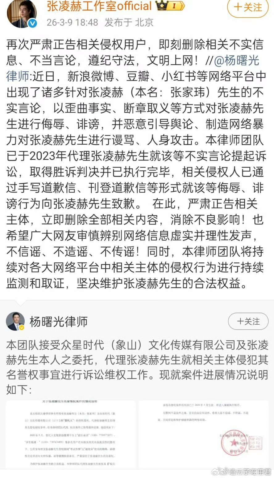 张凌赫工作室更新维权进度