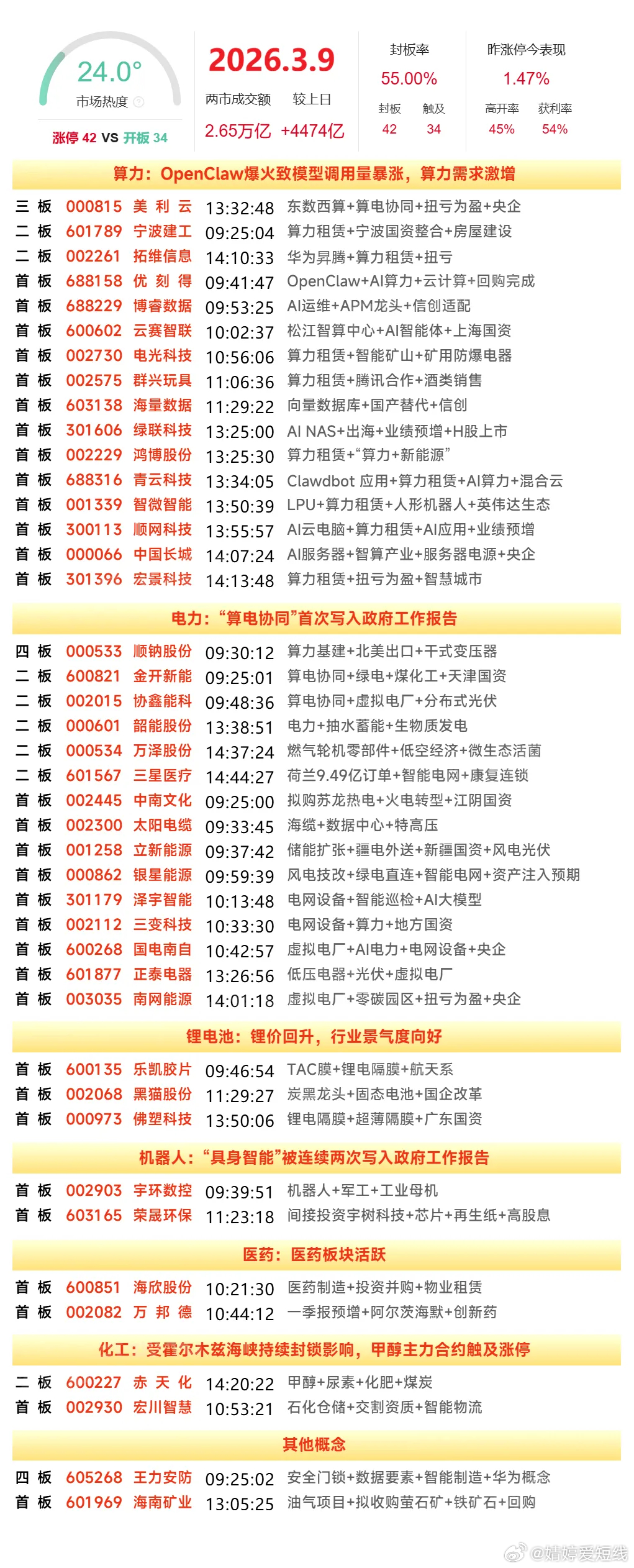 3月9日,全天封板复盘。