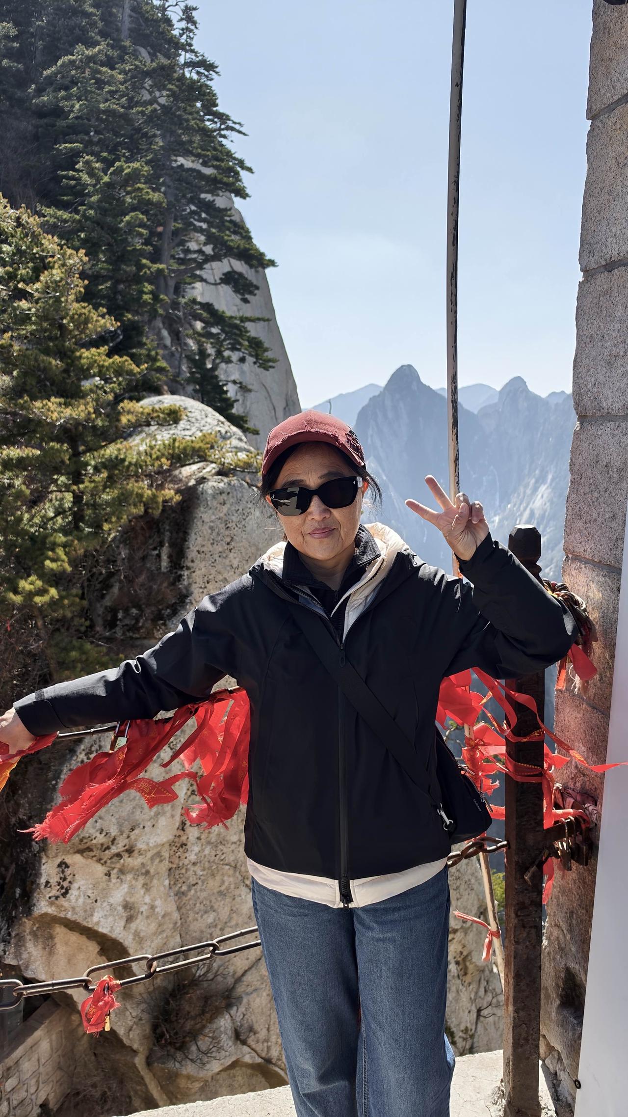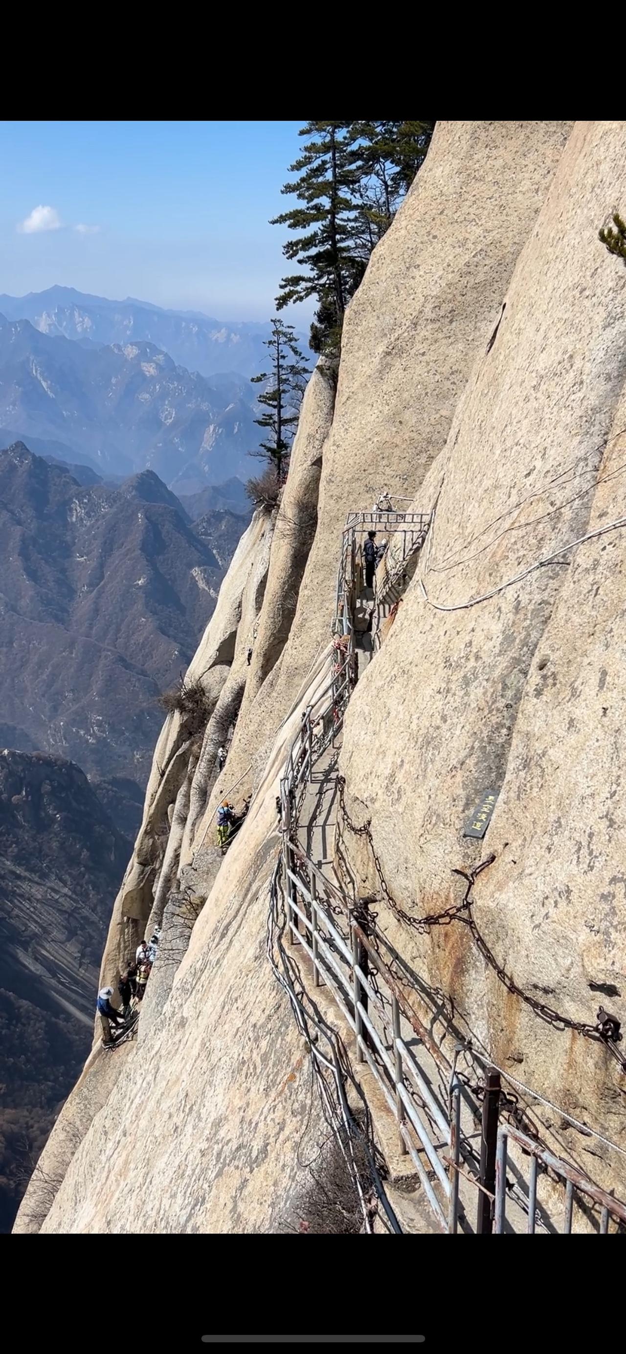 今天登华山,坐索道西上北下,爬了西、南、东、中、北五座山峰,用时7个小时,上山还可以,下山的确很消耗体力。长空栈道只有18岁-55岁的人才可以爬,我们想爬也没资格了,所以无论做什么一定要趁早。