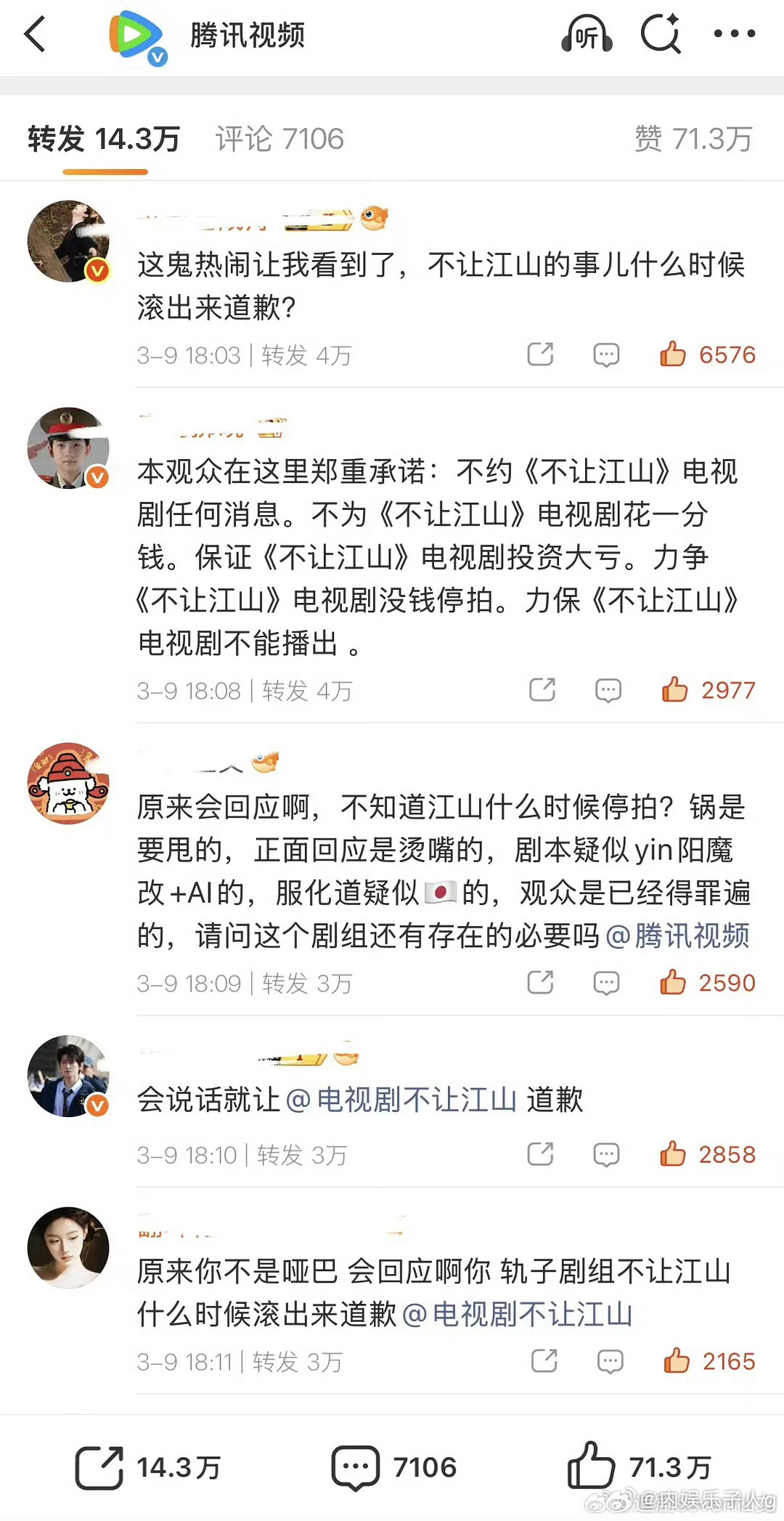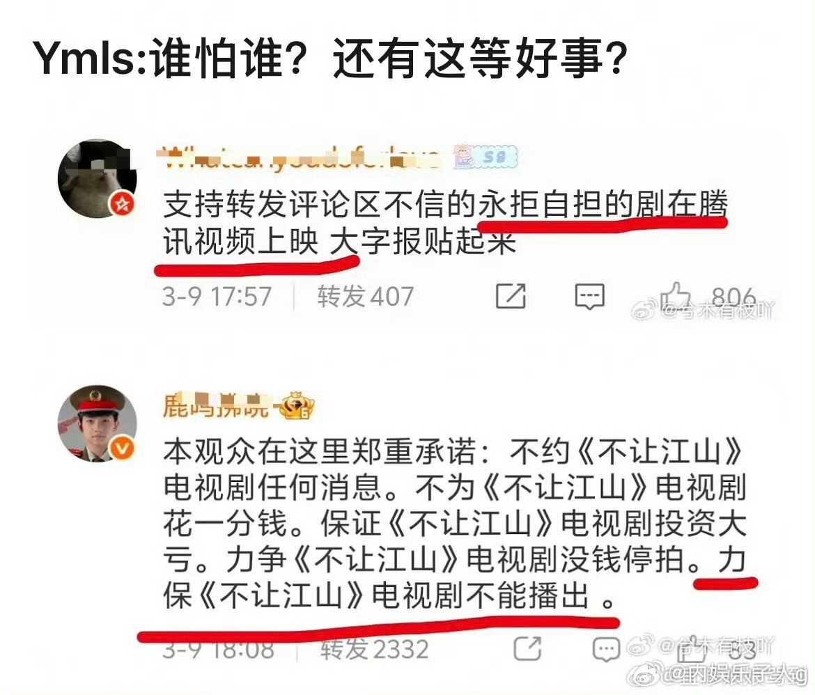 腾讯回应的转发区下,杨洋粉丝还在为不让江山维权…世界纷纷扰扰…我们ymls一心只有维权