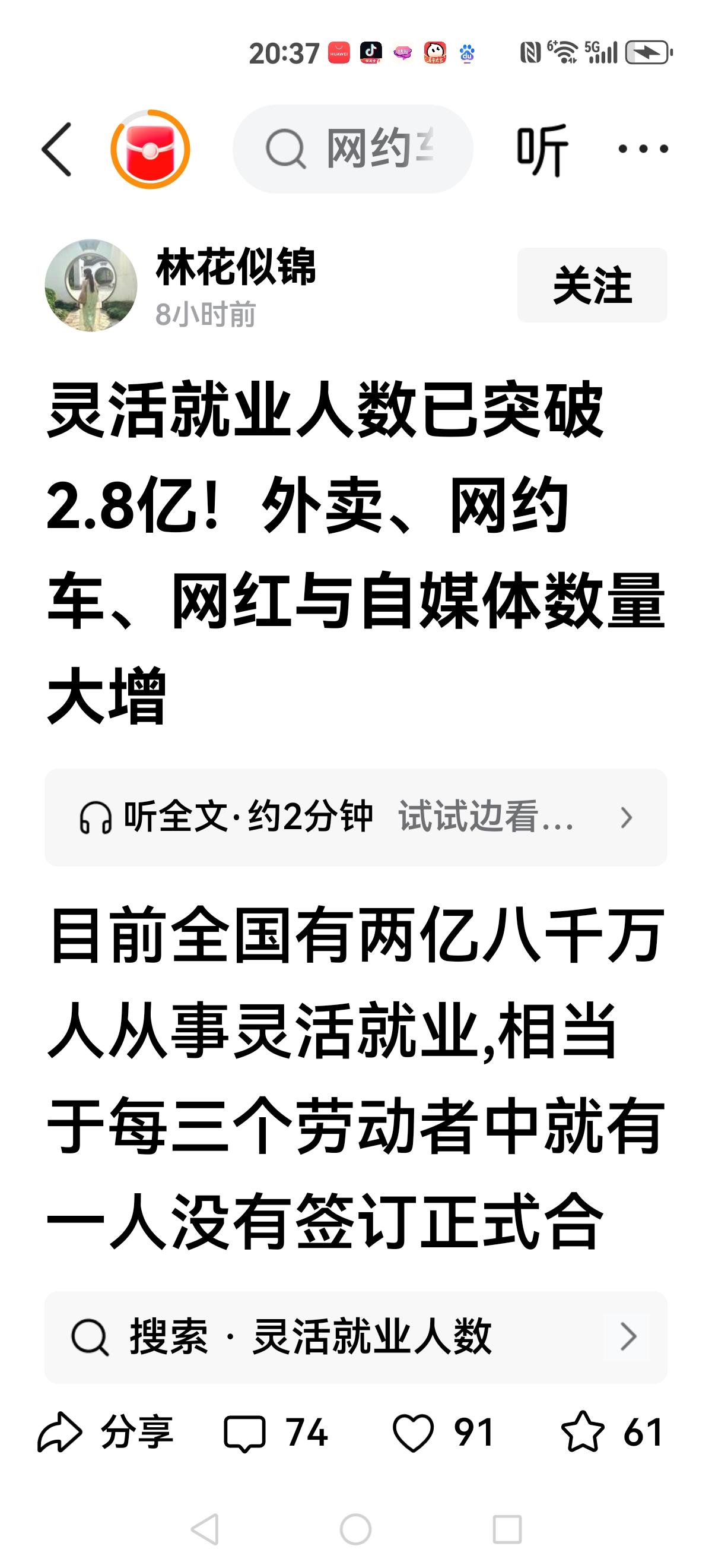 【张维为应该给把脉了】 灵活就业人数从2.4亿,直接升到2.8亿。 是不是该请张维为把脉啊