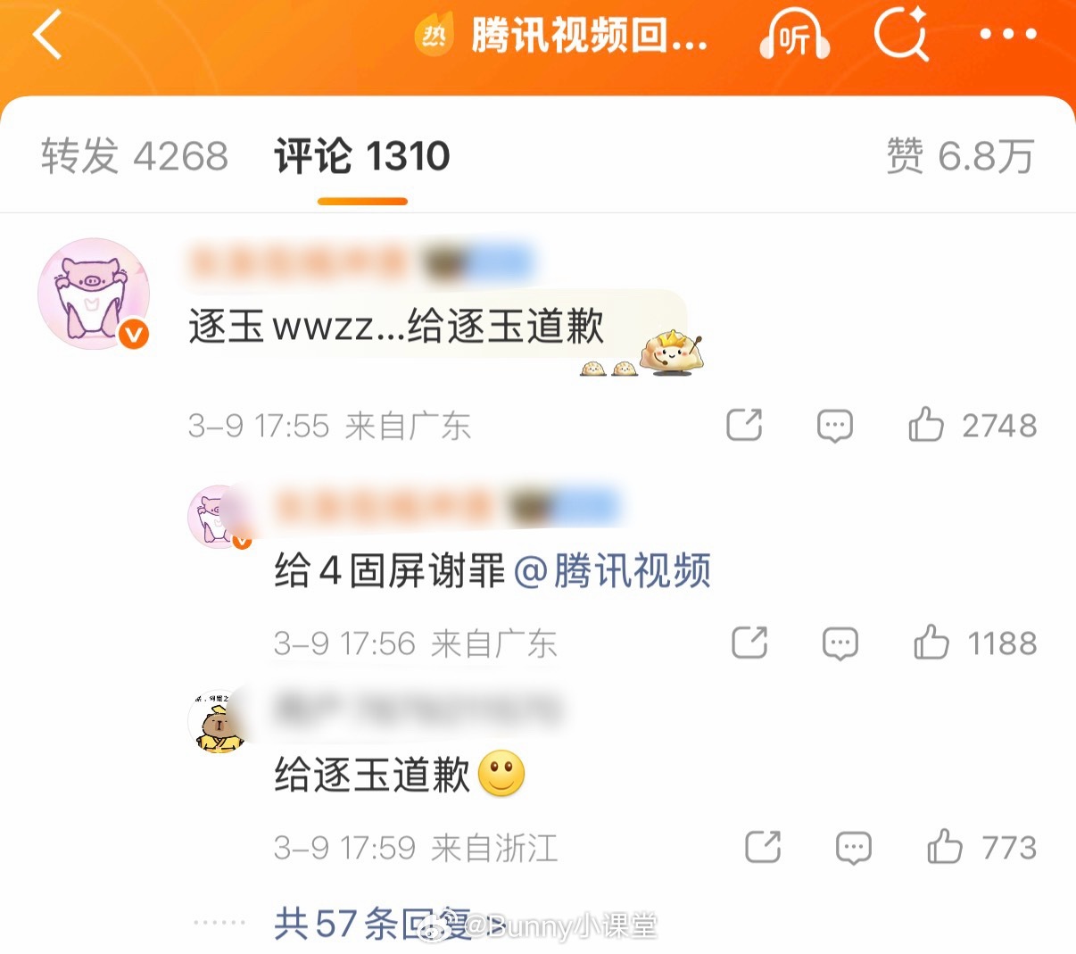 腾讯视频回应播放异常,称该问题仅为页面展示错误,不影响任何站内外显示数据,已经紧急修复并逐步覆盖更新中。评论区要求给逐玉道歉,并继续给好待遇……托举成这样了,还要道歉啊