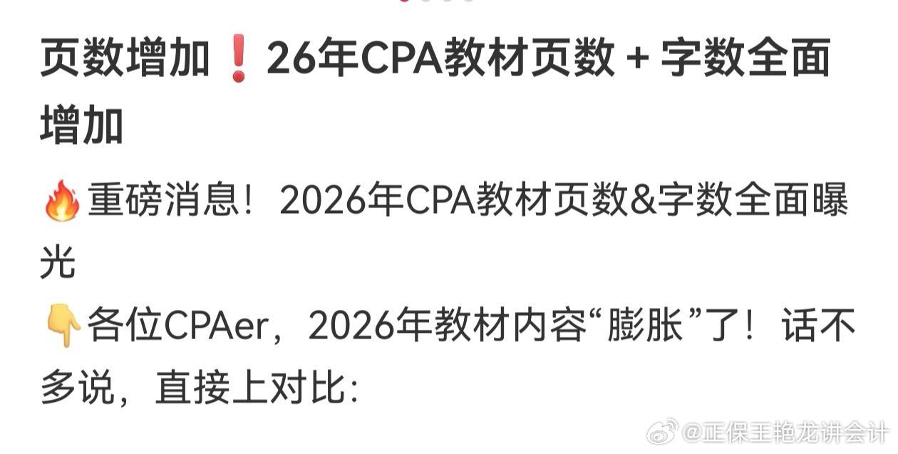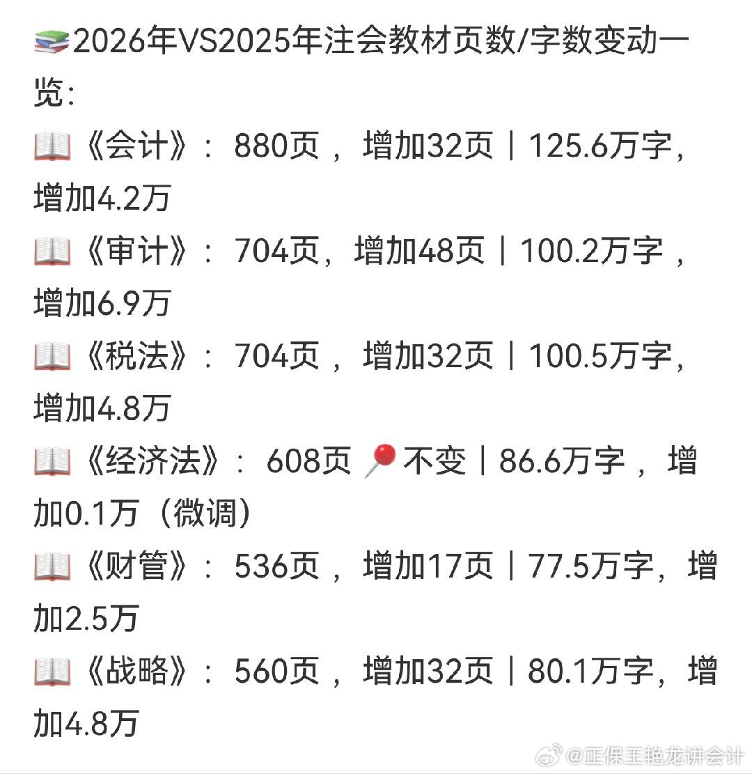 cpa 2026年注会各科教材,除了经济法以外,普遍增肥,好心疼备战cpa的勇士们。CPA