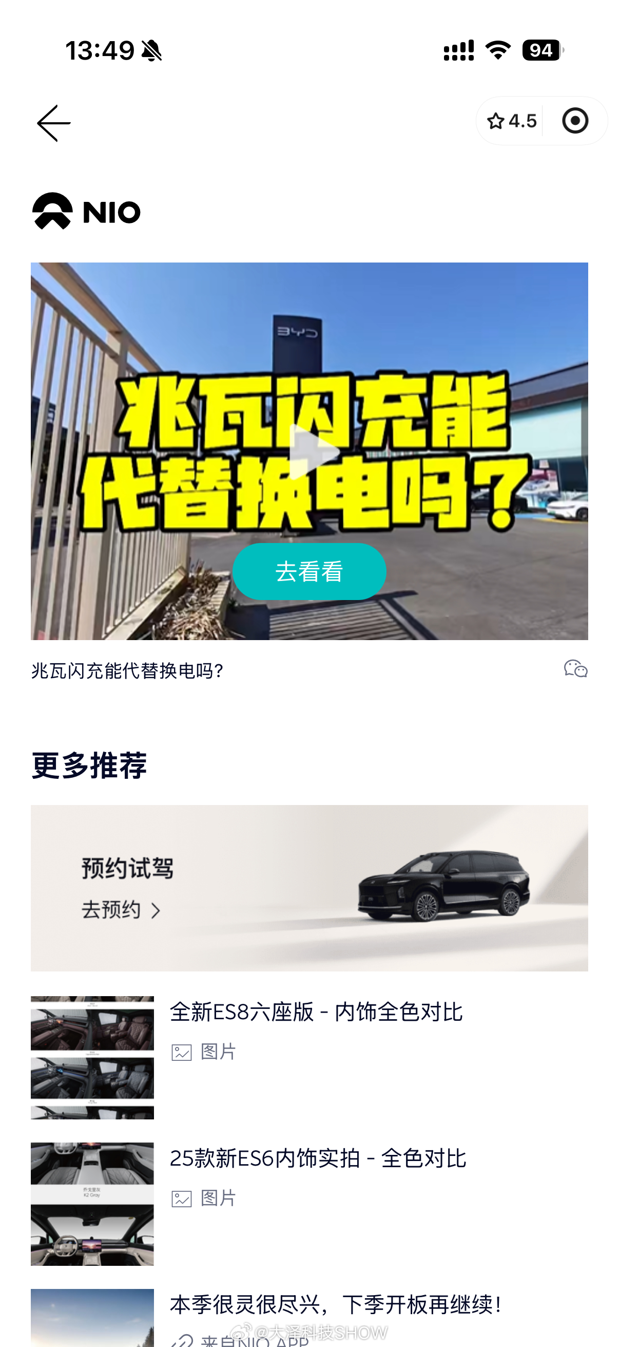 蔚来李斌称超充会电池有伤害最近蔚来的销售疯狂地给我推这个视频……