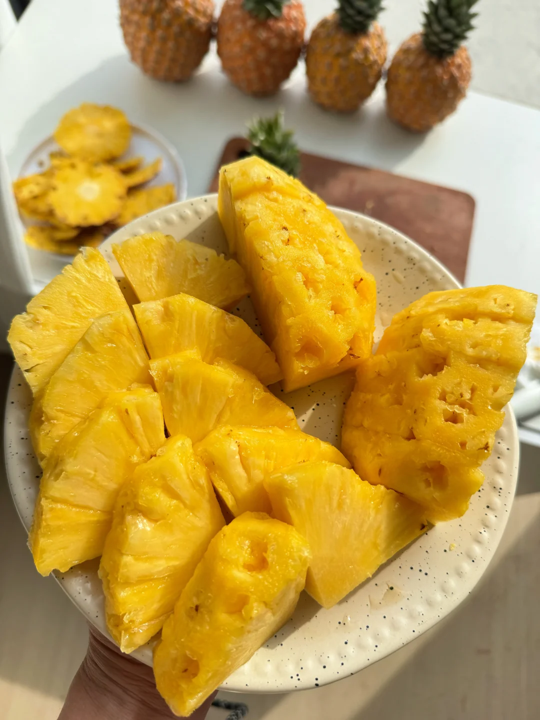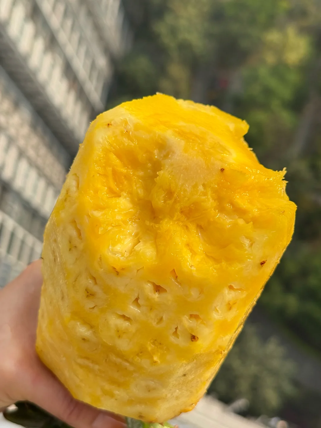 树上自然熟的凤梨真的是绝绝子 削皮就吃,完全不担心会酸 汁水多到滴满一地,又香又甜 不想菠萝那样还要挖刺眼,还要泡盐水 凤梨就简单多了,削皮就开啃。