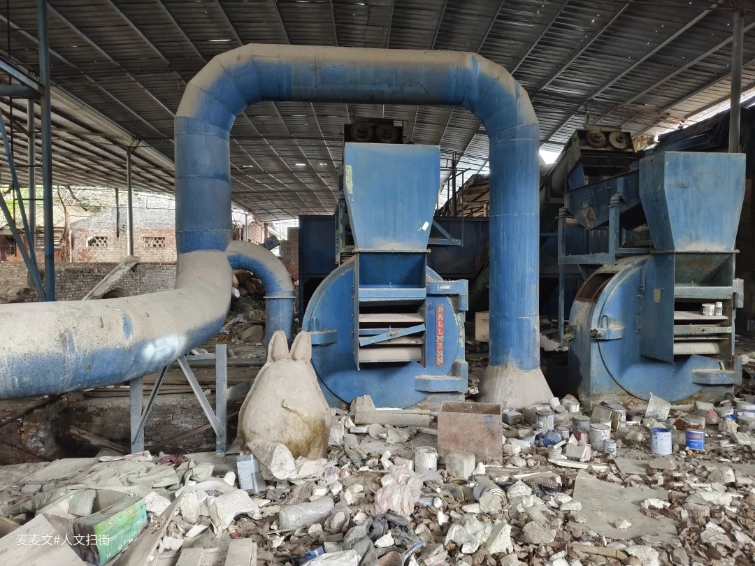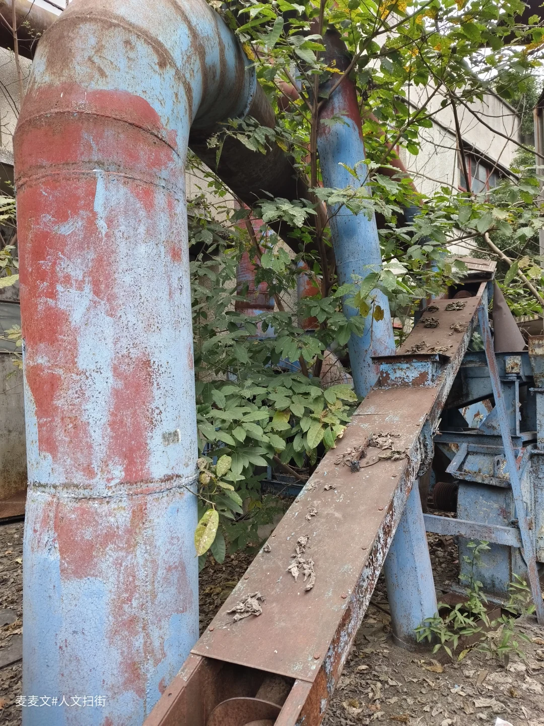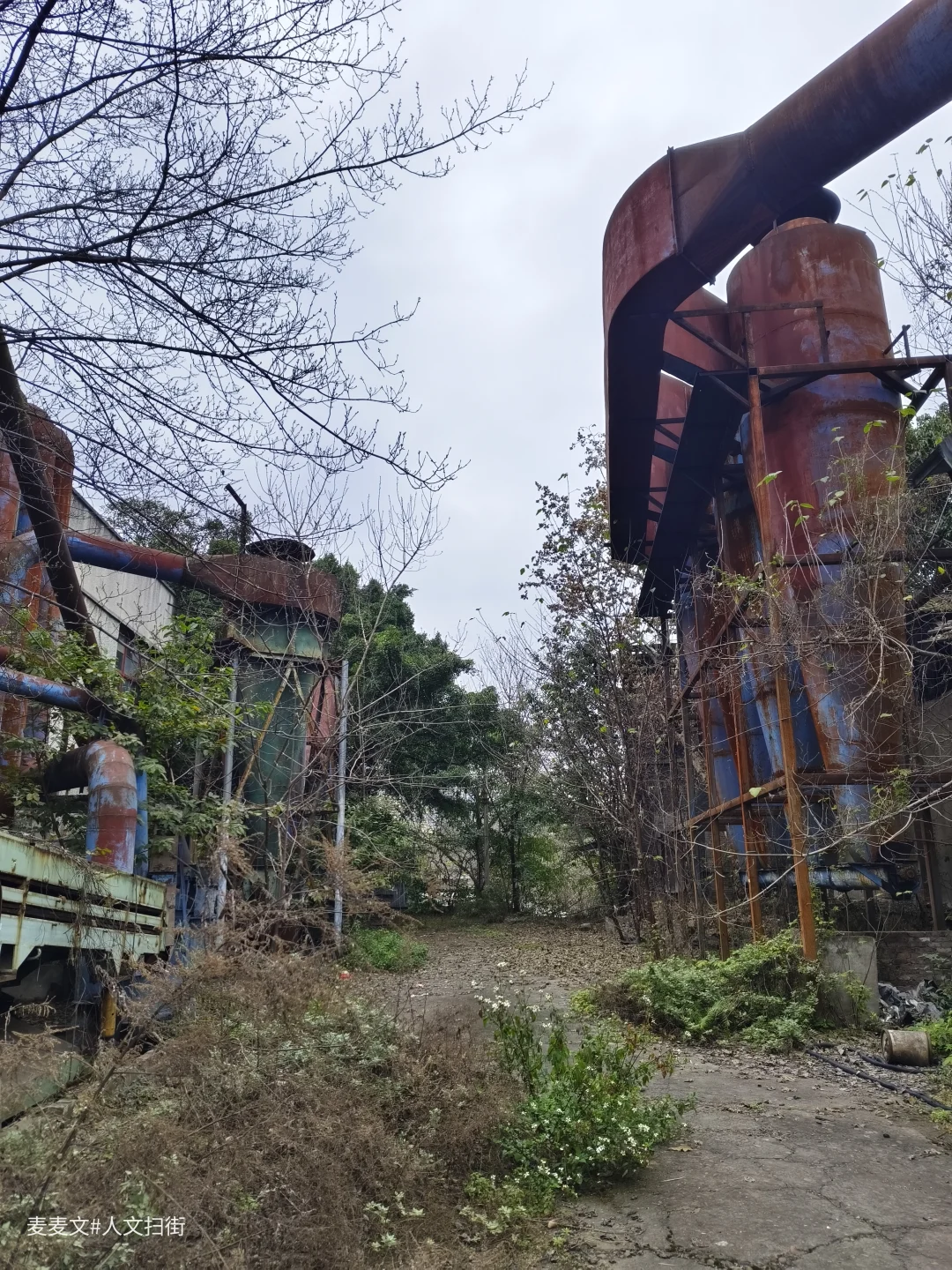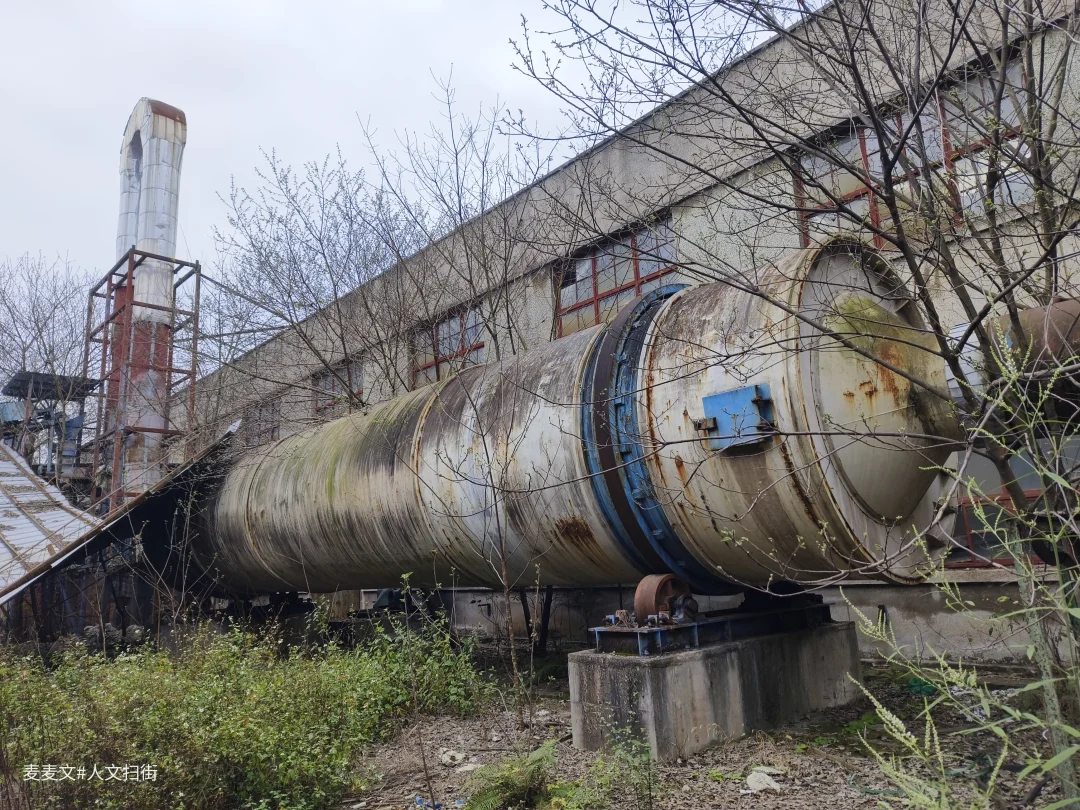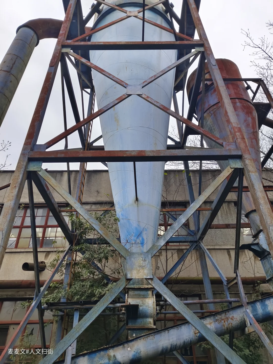 在重庆大渡口某废弃的老厂房里,蓝红交织的旋风分离器与巨型滚筒烘干机静静伫立,锈迹爬满金属骨架,像被时光遗忘的巨兽。 杂草从水泥地的裂缝里钻出,缠绕着生锈的管道与螺旋输送机,把工业的硬朗揉进自然的柔软里。厂房内,破碎的砖瓦与散落的零件诉说着曾经的轰鸣,而室外,灰蒙的天空下,管道迷宫与锥形罐体构成了超现实的工业图景。 这里曾是重庆工业的脉搏,如今,每一道锈痕都在低语:钢铁时代的余温,仍在这座城市的肌理里流淌。