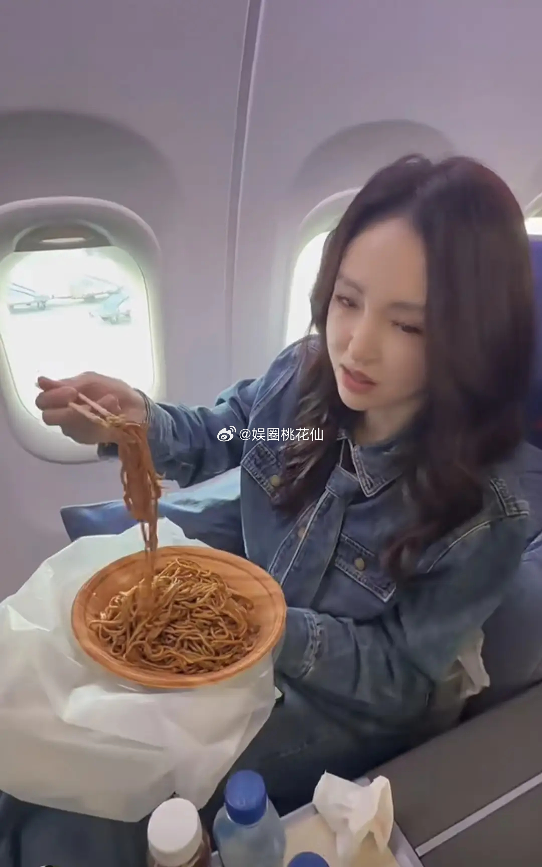 董璇在飞机上吃武汉热干面,被香味深深吸引,忍不住直呼“这热干面绝了”,模样超满足。