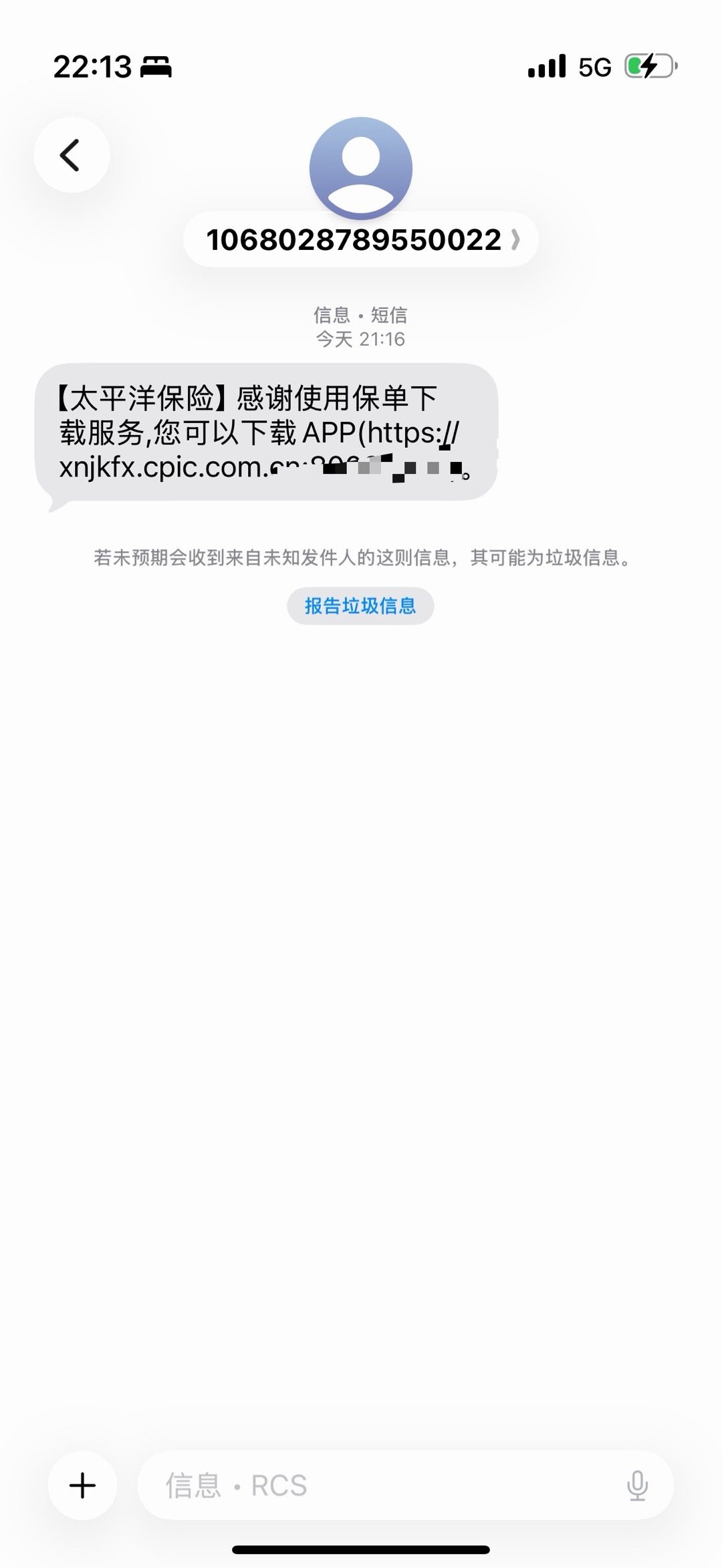 最后我打太平洋保险客服电话,第一遍提示发给我手机号或者邮箱,没收到。第二遍经说发给我一个链接,打开就一个 App 下载链接而不是保单下载链接(图6)。第三遍客服说加急处理给我个保单下载链接,一个工作日内处理完。