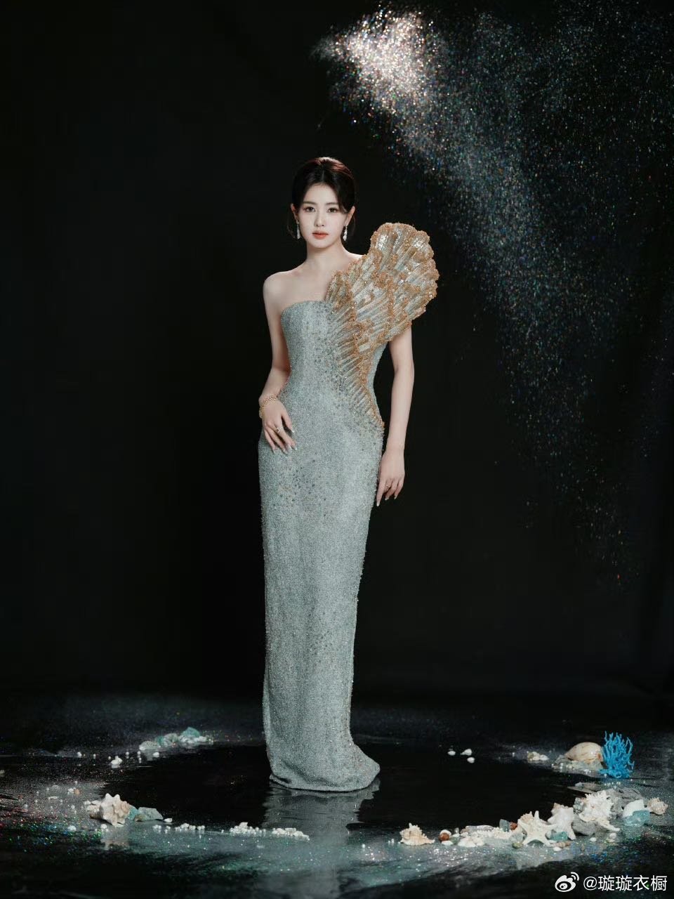 白鹿鎏金扇肩缀星辰,银鳞裙裾拂浪花,白鹿两套高定惊艳登场。 白鹿又双叒一场活动两