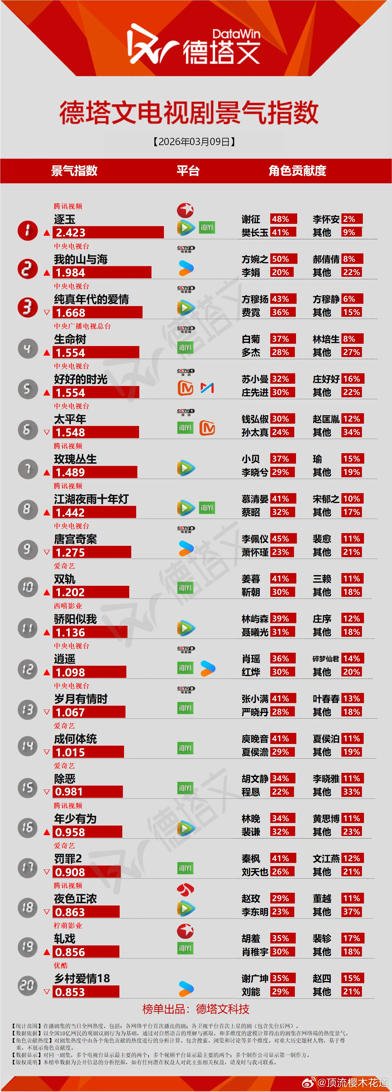 综合来看逐玉不管剧外怎么吵闹,主演是实打实的收获到流量了。