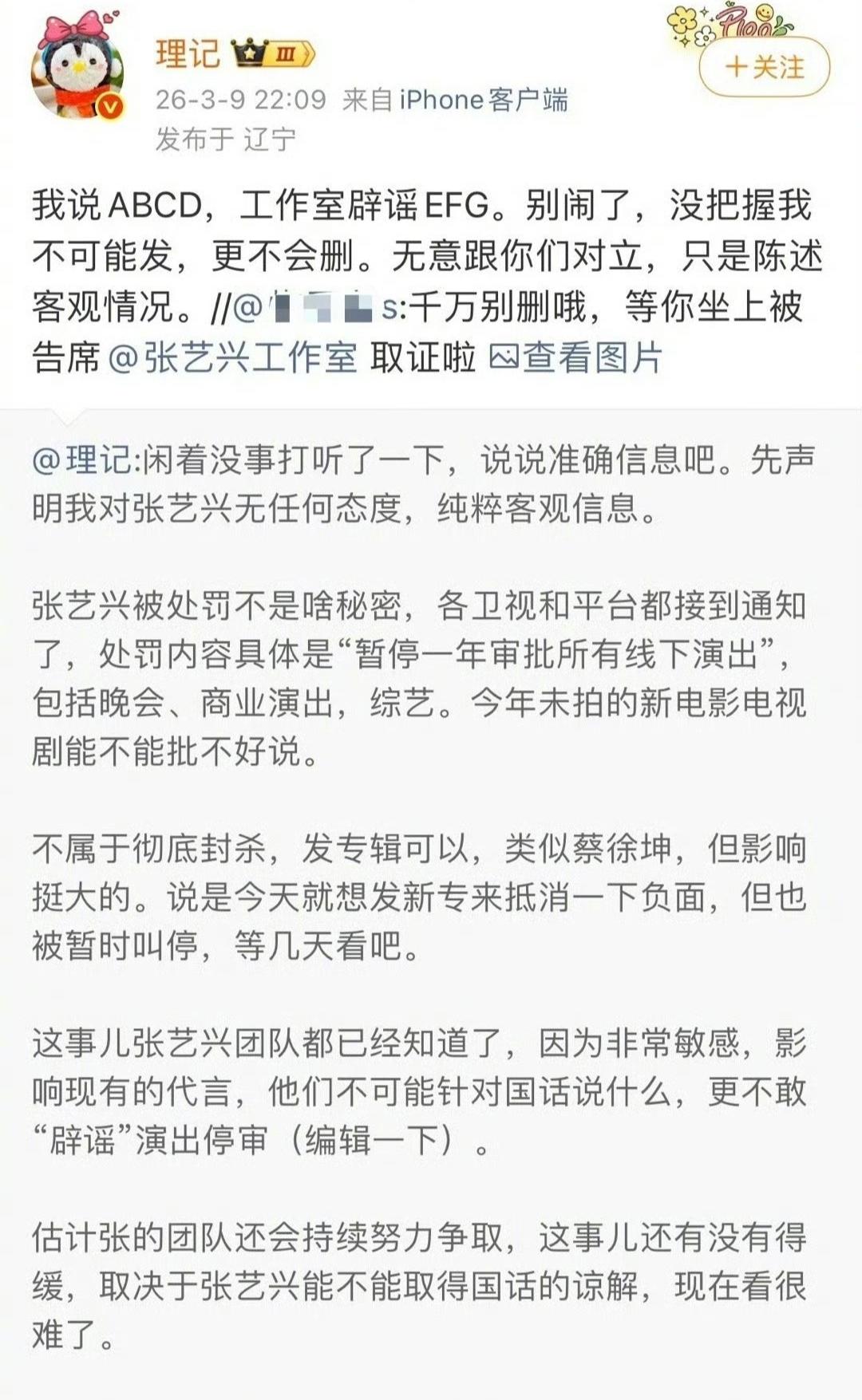 看样子应该挺严重,直接禁言,并且相关的审批好像也都被暂停了。 只是我闹明白,狗仔也没说明白,张艺兴到底是出啥事了? 工作室之前辟谣好像也没有说的太明白,我到现在都不知道,为什么都说张艺兴出事了? 他到底怎么了?