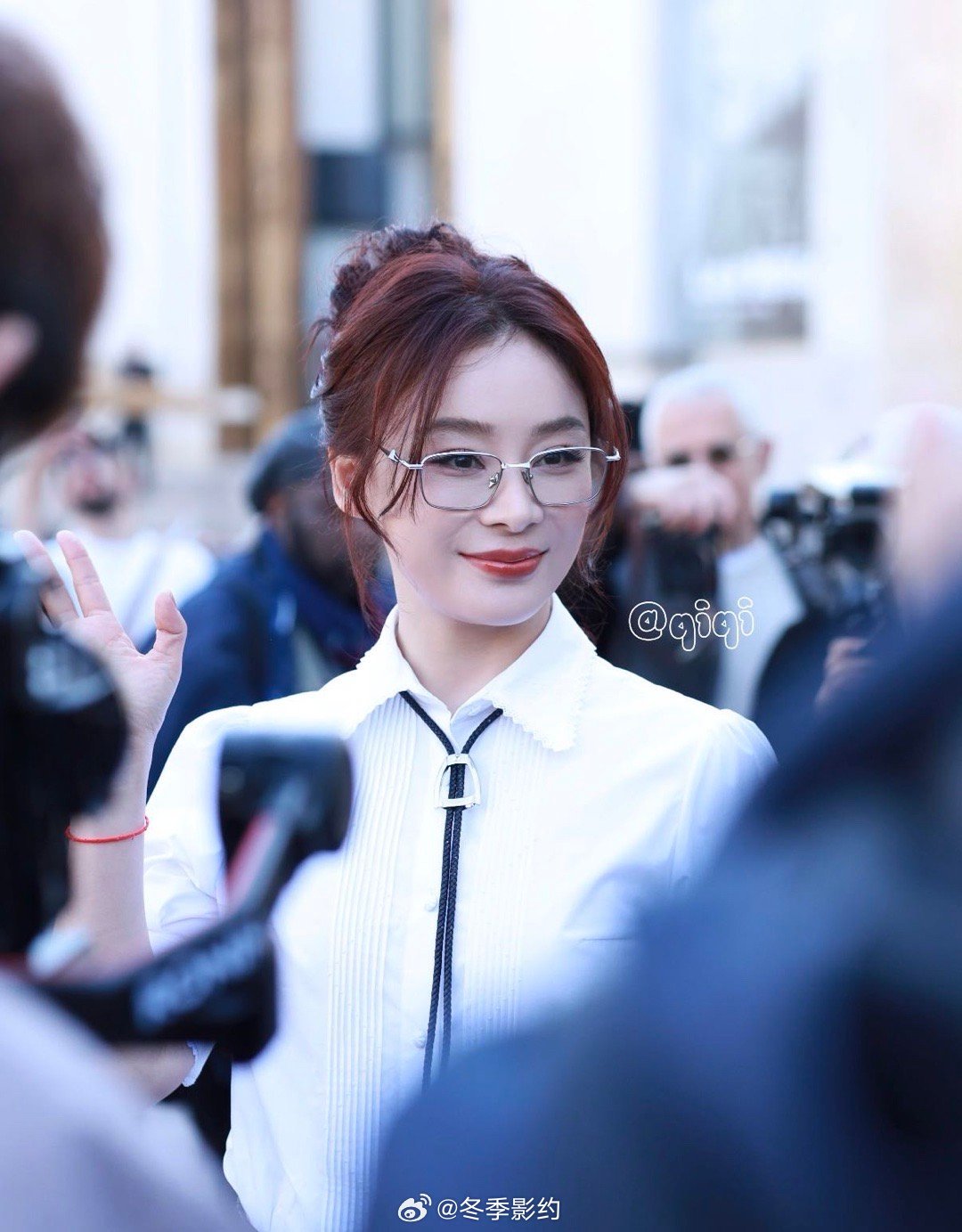 早说给袁姗姗上老钱风 看到袁姗姗老钱风造型直接被她帅到,白衫黑裤配细框眼镜,清冷禁欲又高级,老公姐本姐。