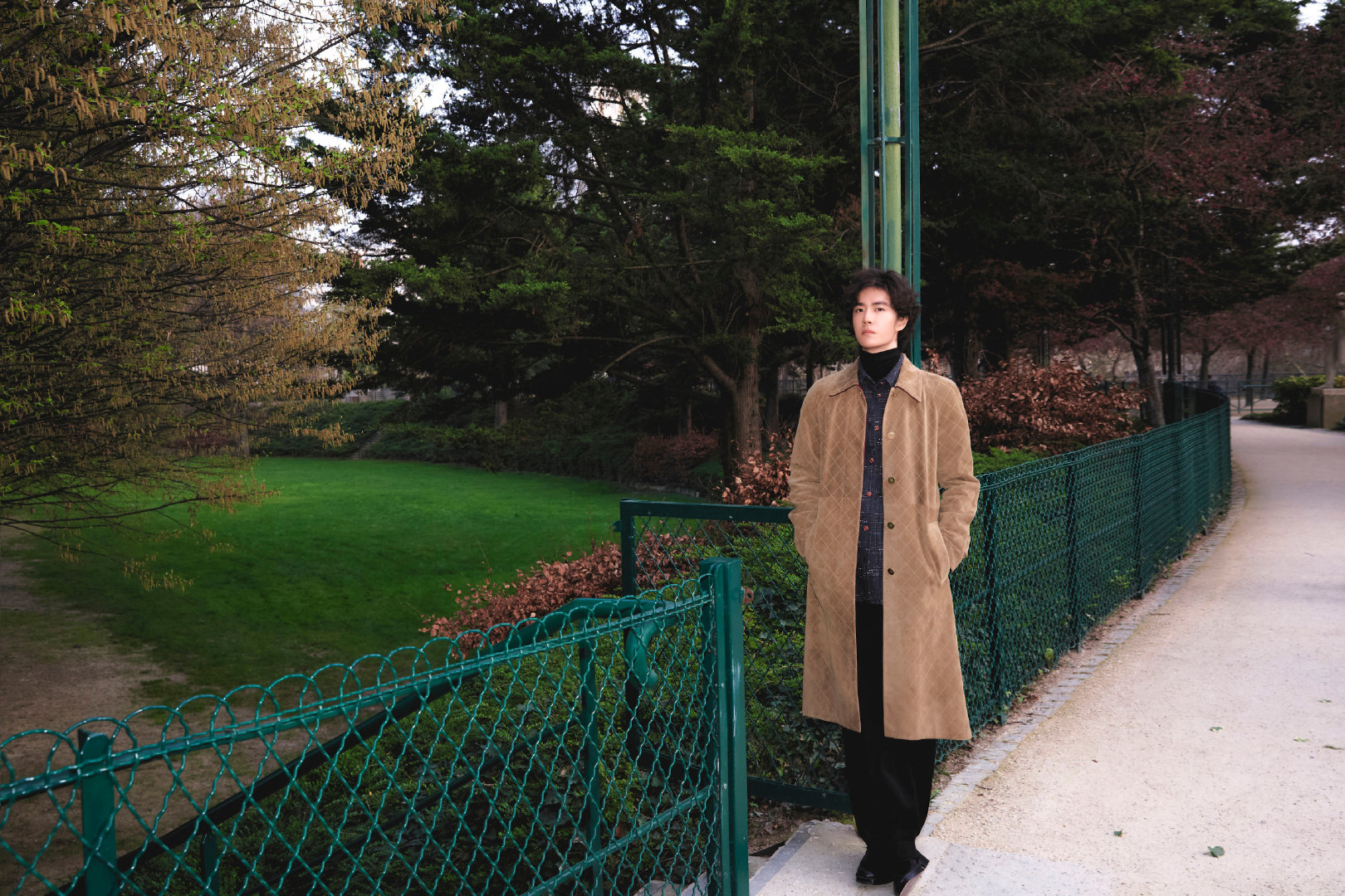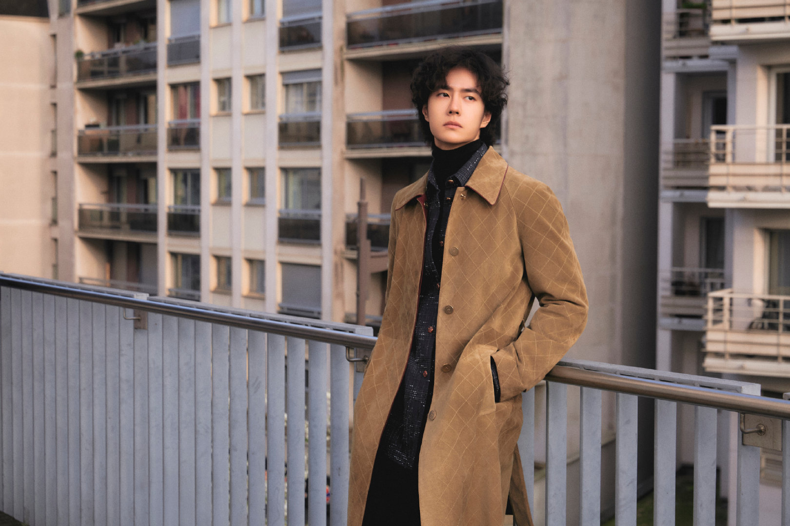 王一博米色麂皮大衣王一博香奈儿品牌形象大使
