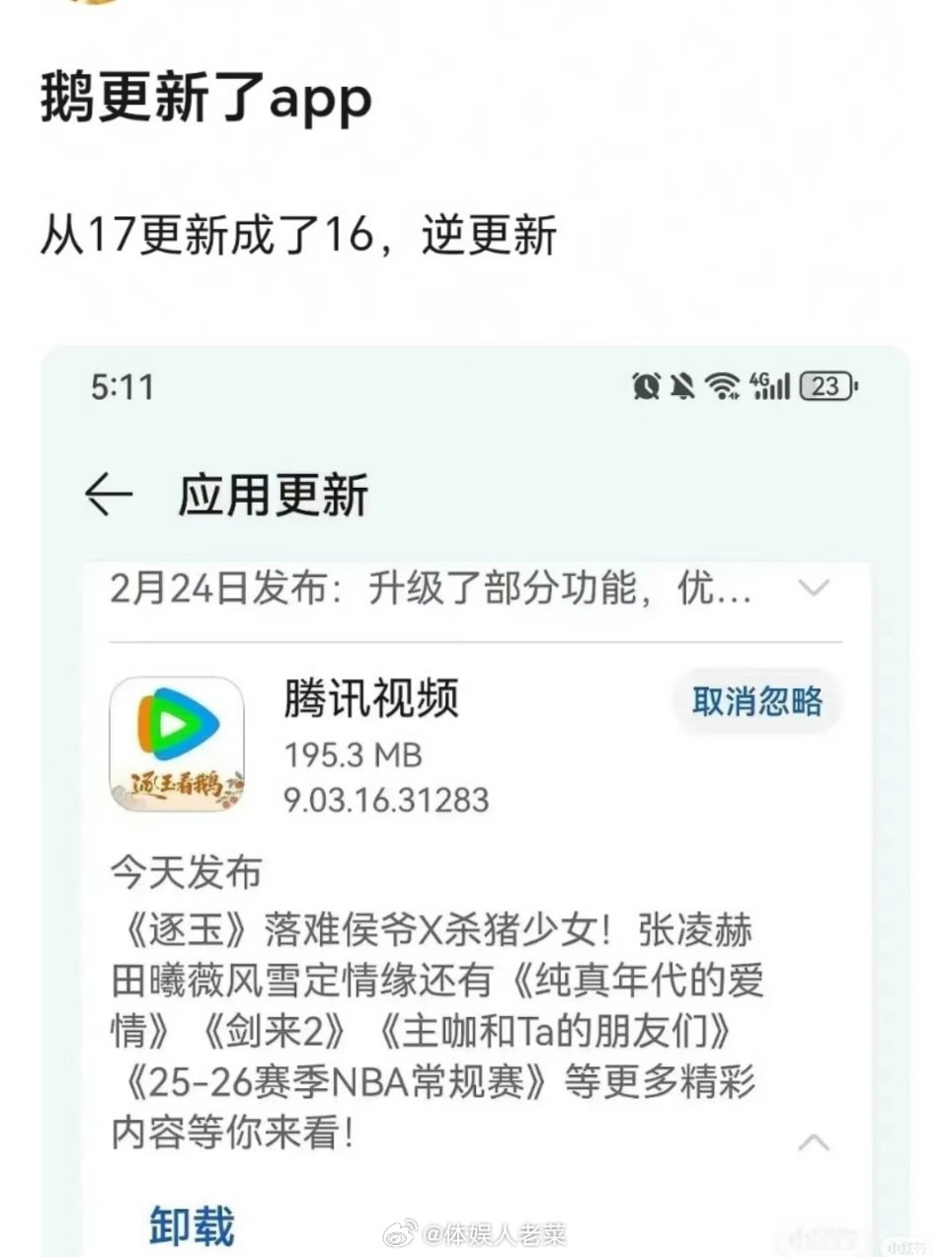 腾讯视频热度bug闹大了!《逐玉》《玫瑰丛生》等多部剧都翻车中招,道歉声明被怼,压根没说服网友,评论区几乎全是质疑声。更让人摸不着头脑的是,有网友实测发现,腾讯视频今天居然把安卓客户端版本从17回调到了16,这种罕见的"版本开倒车"操作。腾讯视频 版本回调逐玉热度