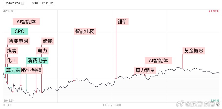 连板股晋级率降至37.5%,除去2只个股实现3进4外,仅有美利云实现晋级3连板。不过市场整体情绪仍处于回暖态势,发布可能申请停牌核查公告的算电协同概念人气股豫能控股全天呈现低开高走行情,盘中续创阶段新高,支撑所属的绿电以及算力租赁概念维持强势,多只趋势抱团股继续向上展开加速。随着上周末OpenClaw消息面持续发酵,OpenClaw概念以及算力租赁相关产业链再度掀起涨停潮。而随着国际油价盘中冲高回落,人气龙山东墨龙、洲际油气等炸板回落逼近翻绿,引发能化产业链后排股展开补跌。可见科技与涨价概念间跷跷板行情依旧,短线风格剧烈切换仍是大概率事件。