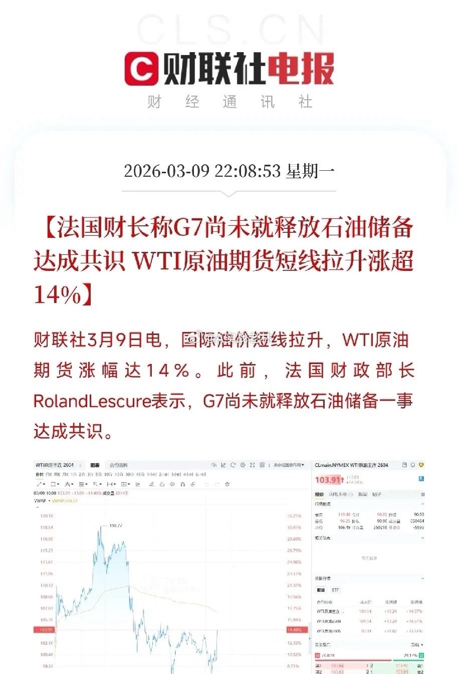 法国财长刚刚透露:七国集团还没有就释放石油储备达成共识。