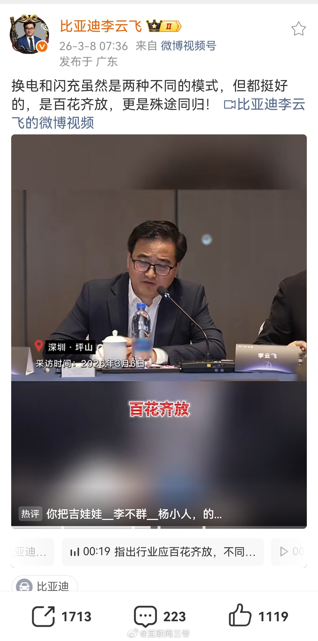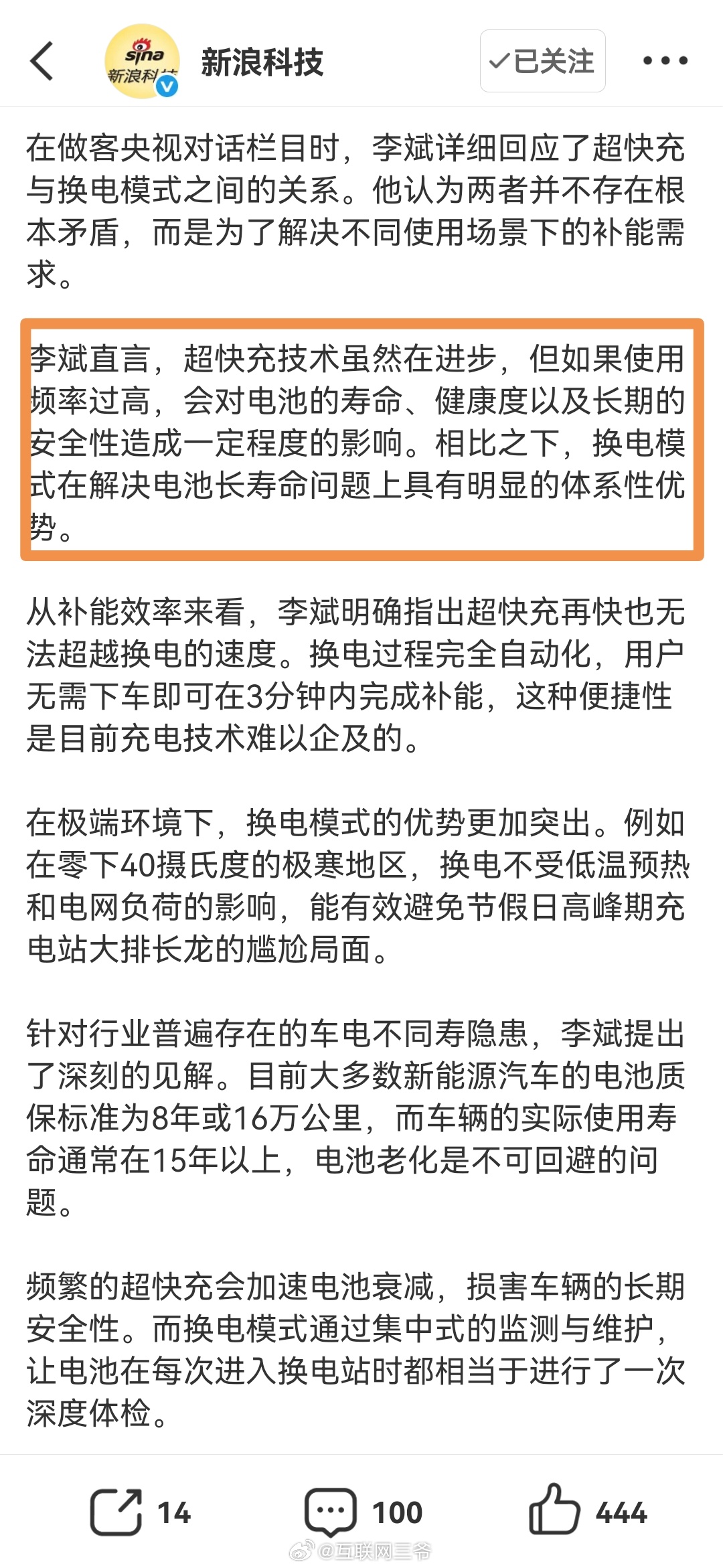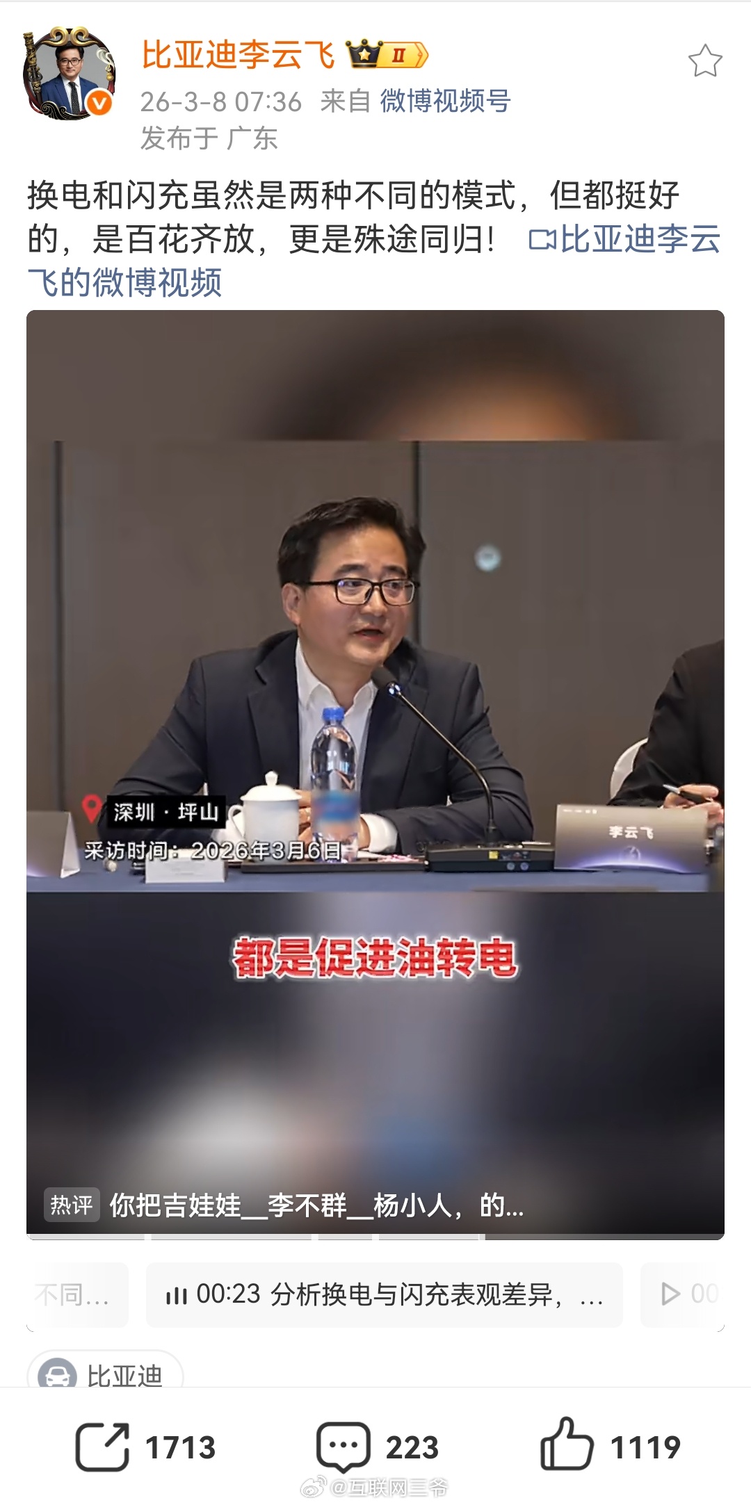 蔚来李斌称超充会电池有伤害李云飞:都挺好,都是促进油转电,百花齐放;李斌:超充用