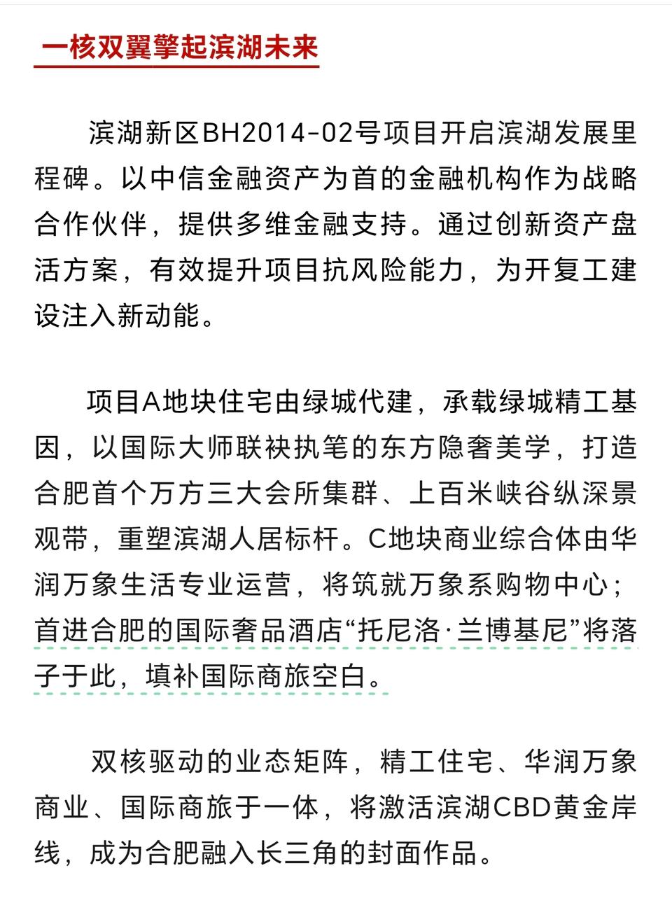合肥滨湖万象系“战舰”起航,兰博基尼酒店“炮火”轰开商业新战场! 近日,合肥滨湖宝能万象系商业迎来关键进展——施工单位已正式进场,多台吊车正在紧张安装活动板房,标志着这一停工多年的商业地块正式进入实质性建设阶段。根据规划,项目总建筑面积达45.19万㎡,涵盖高端购物中心、沿街商业、豪华酒店及地下商业空间,其中商业综合体部分将由华润万象生活专业运营,打造合肥最大单体万象购物中心。 更引人注目的是,项目商业板块已确定引入兰博基尼酒店,这将是合肥首进的高端豪华酒店品牌,进一步提升区域商业能级。作为华润万象生活在合肥布局的第7座万象系商业,该项目不仅将串联滨湖新区南北两大商圈,更以“轻资产”模式为烂尾项目盘活提供示范,助力合肥迈向国际消费中心城市。