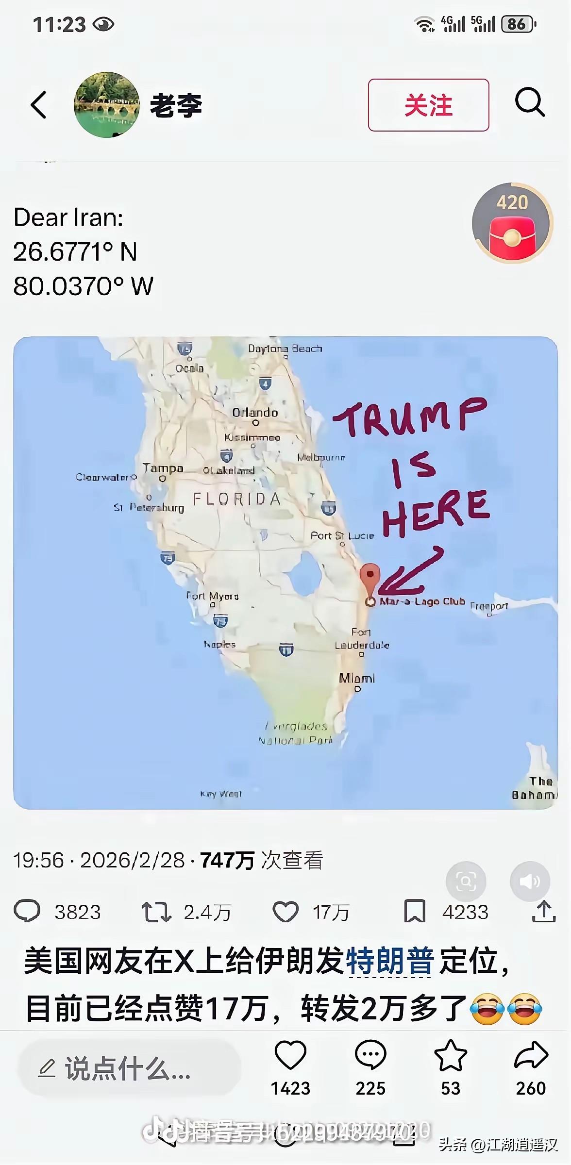 伊朗也发布圣火令了,第一个被波斯教总教主下圣火追杀令的是金毛狮王谢逊,没想到几百年后还是追杀金毛川普。怪不得川普非要格陵兰岛,那就是他以前所在的冰火岛吧?没准特朗普还真是金毛狮王的后代,毕竟当年在冰火岛上那十几年空窗期谁也不知道发生过什么!!