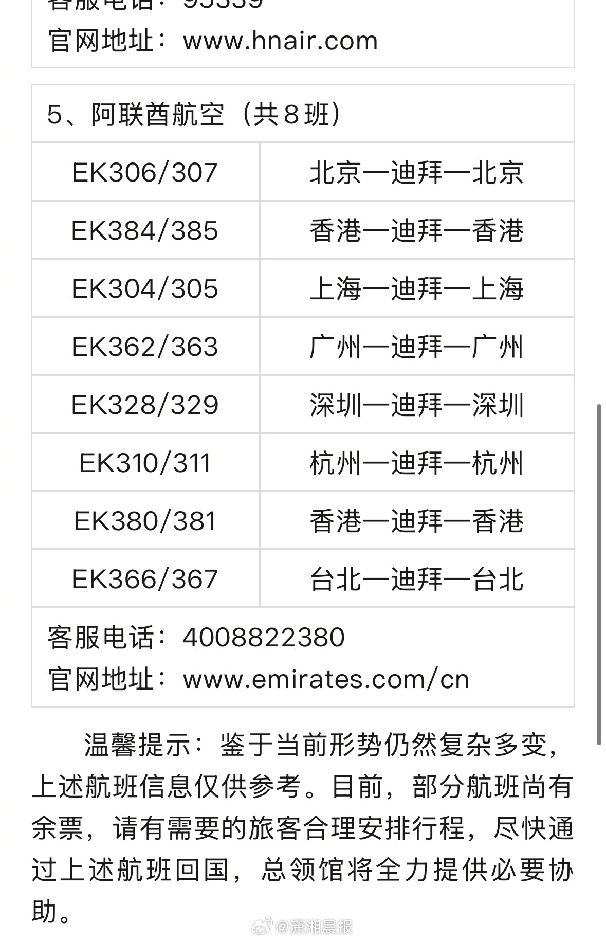 #3月10日迪拜赴华航班公布#中国驻迪拜总领事馆公众号发布《3月10日迪拜赴华航班恢复情况》全文如下,各位滞留旅客:在中国政府大力协调推动和阿联酋主管部门支持配合下,连日来,中国国际航空、南方航空、东方航空、海南航空、阿联酋航空等公司陆续复飞迪拜至中国航线,将覆盖北京、上海、广州、深圳、杭州、海口、香港、台北等城市,尽快协助滞留旅客朋友们安全顺利回国。现将3月10日已确定运行的赴华航班情况通报如下:(点击截图查看) #美军精锐部队突然异动#