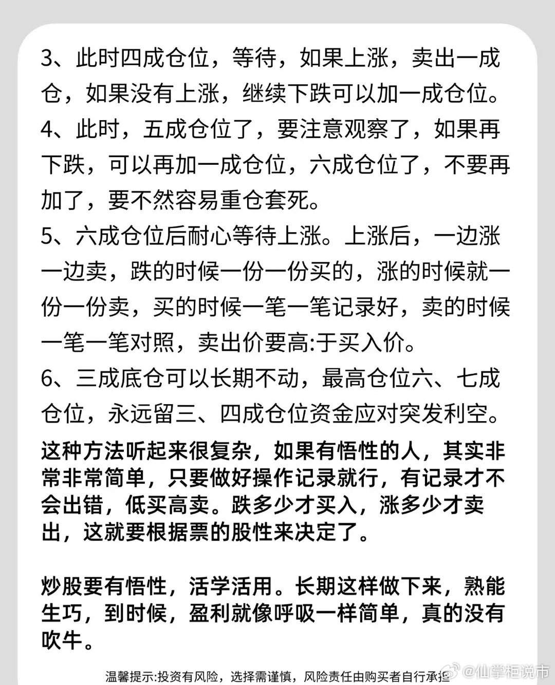 该内容为炒股“仓位滚动法”操作指南,可总结为三部分: