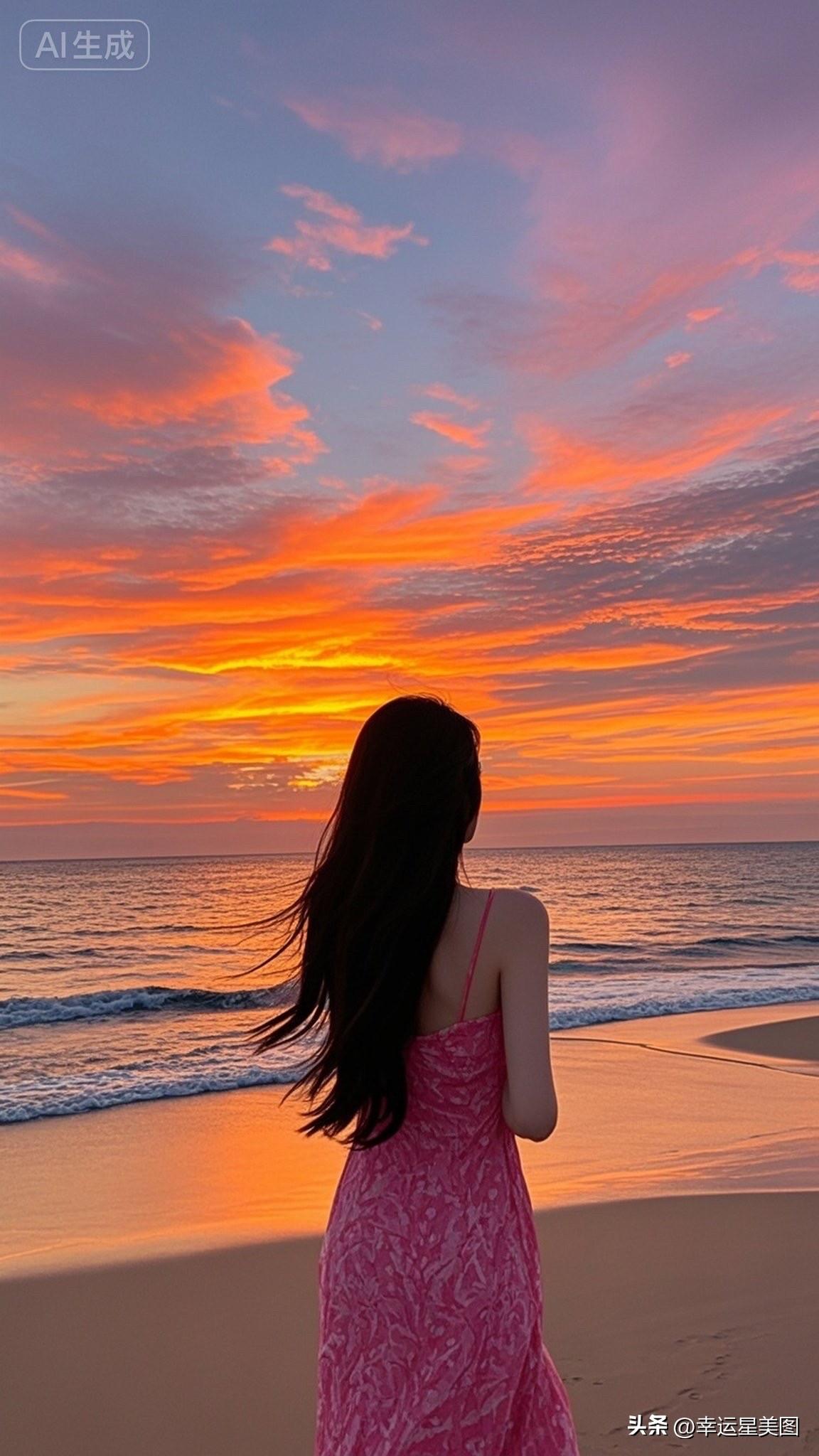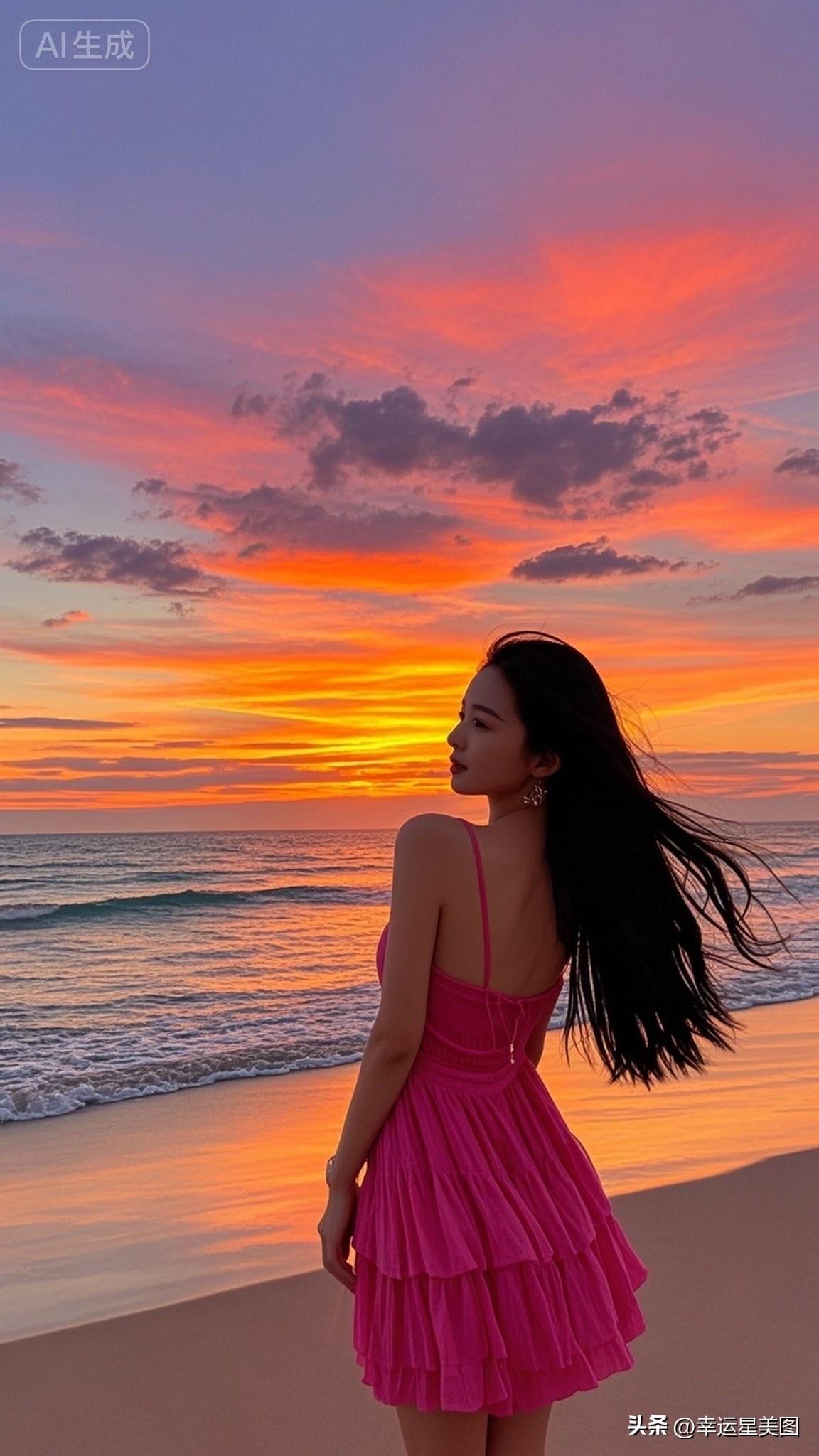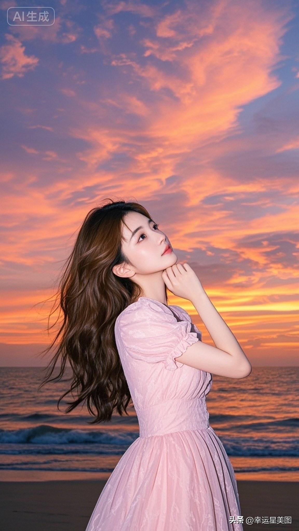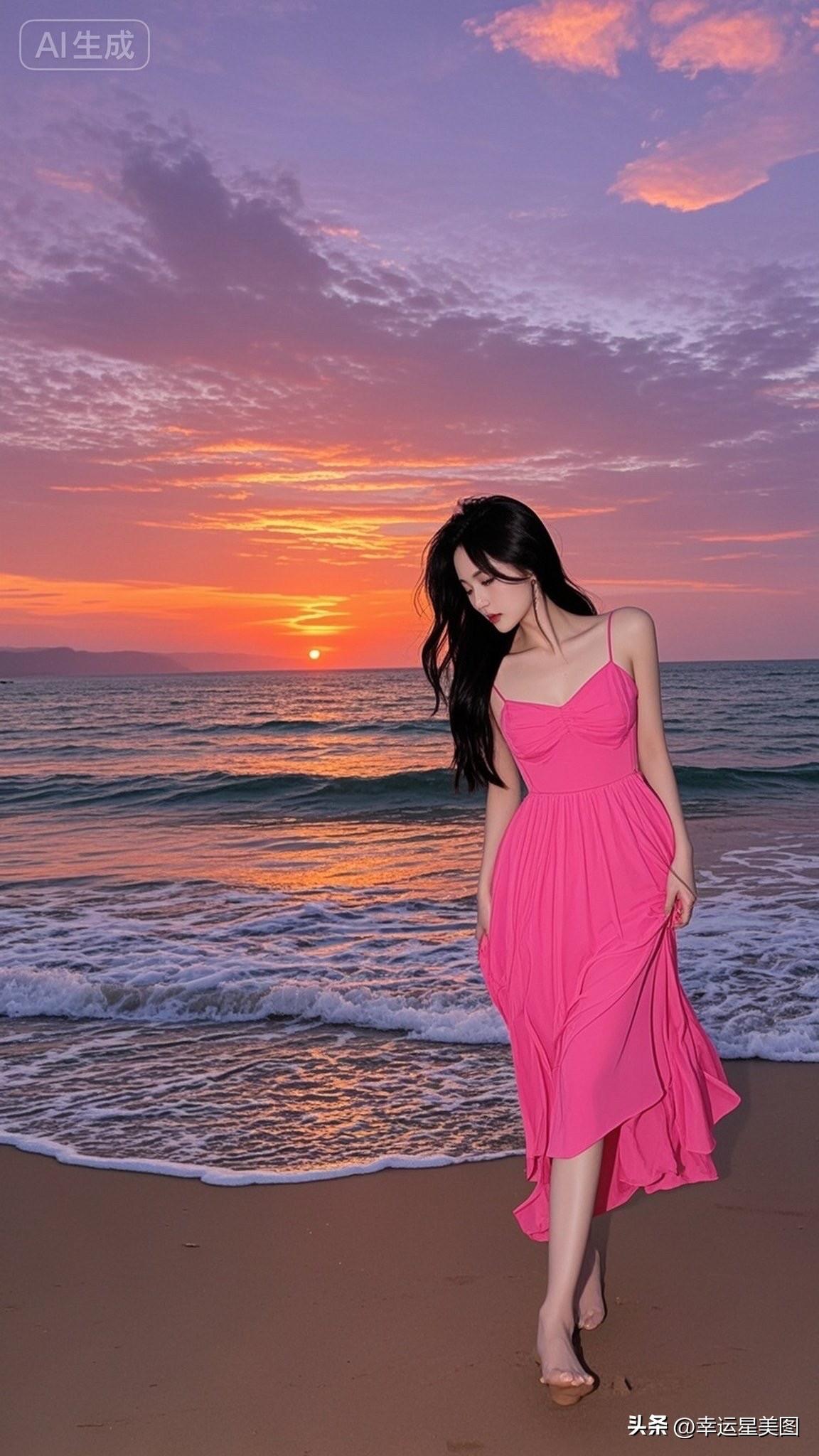 海边日落,粉裙飘逸,少女心满满