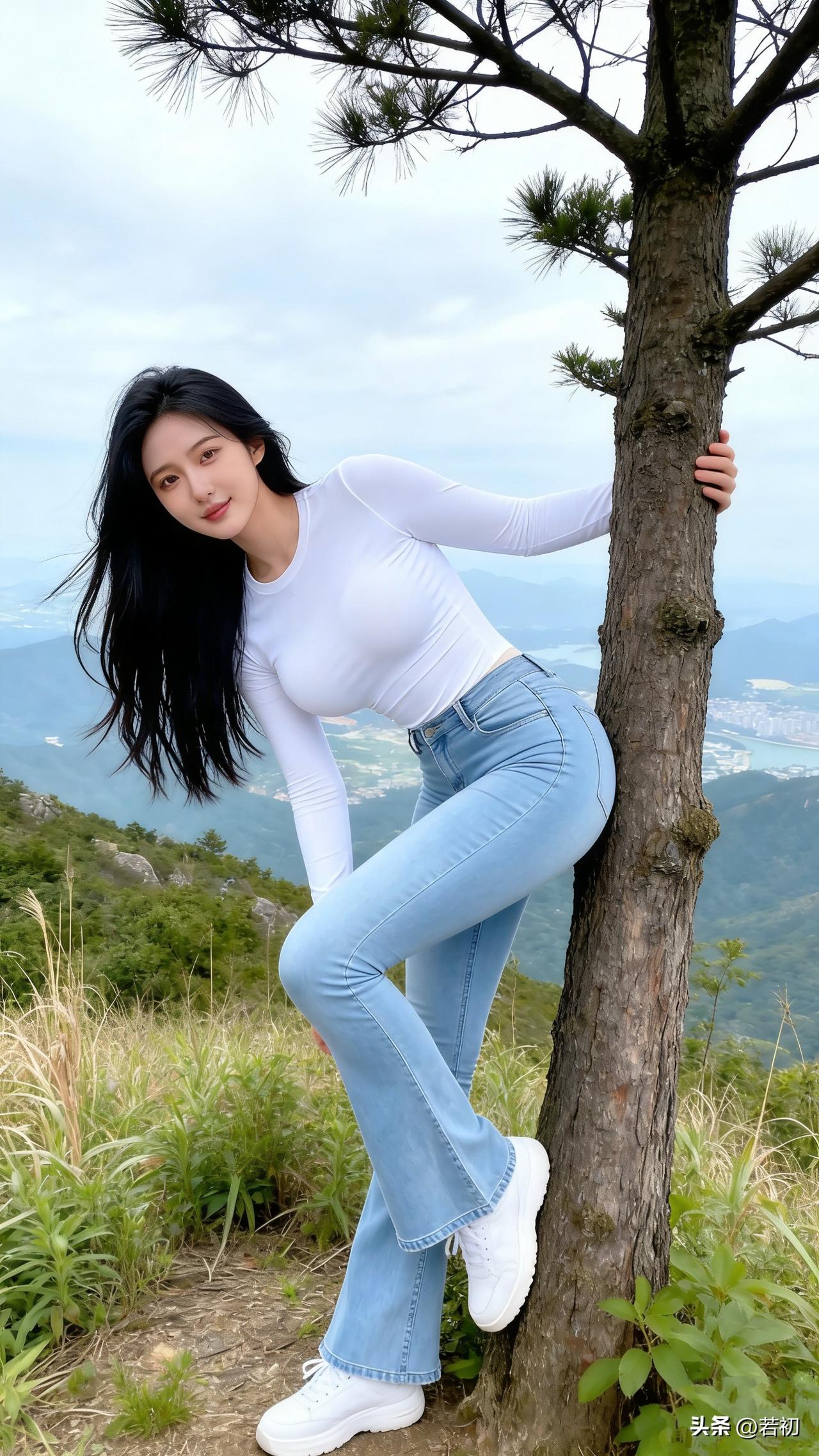 18岁少女的爬山时光,站在山顶,拥抱大自然,青春靓丽,魅力四射!