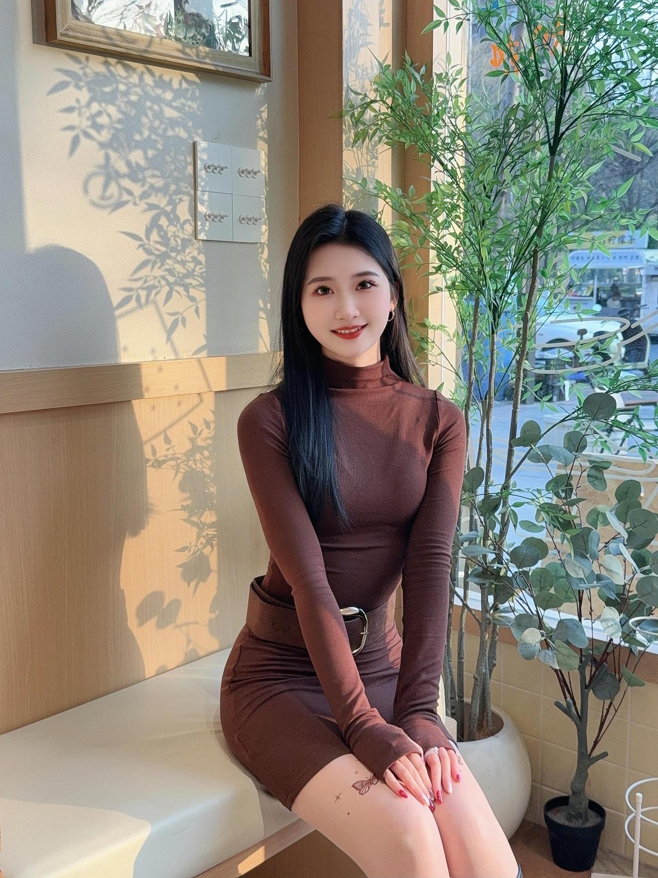 午后阳光刚好,穿了一身深棕系出门。 高领裙很贴身,加根宽腰带走起来更有曲线。 配同色长靴,温柔里带点小气场。 靠在窗边随便拍几张,光线一照整个人都软软的,简单又耐看,日常穿也很有氛围感📸 你们觉得这个穿搭风格,能打几分?