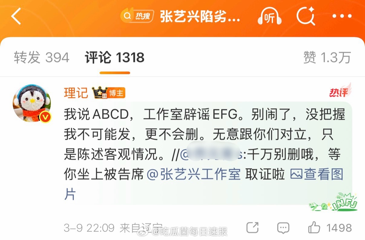 理记硬刚张艺兴工作室声明,并表示自己是陈述客观情况。
