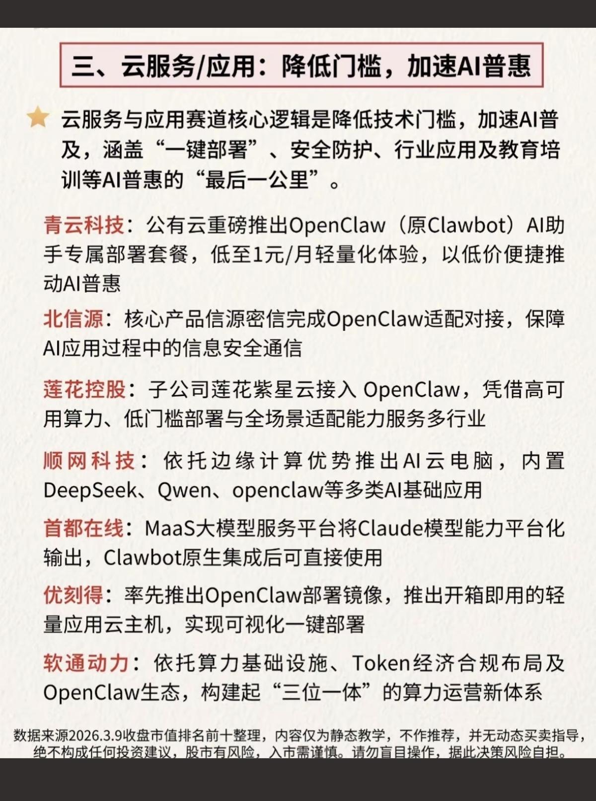 最强主线:🦞OpenClaw实锤关联公司! 确定性实锤关联的公司整理: 1.小米生态链,金山云+算力基建 2.一体机+芯片,国产适配器 3.云服务+应用 相关核心龙头股: