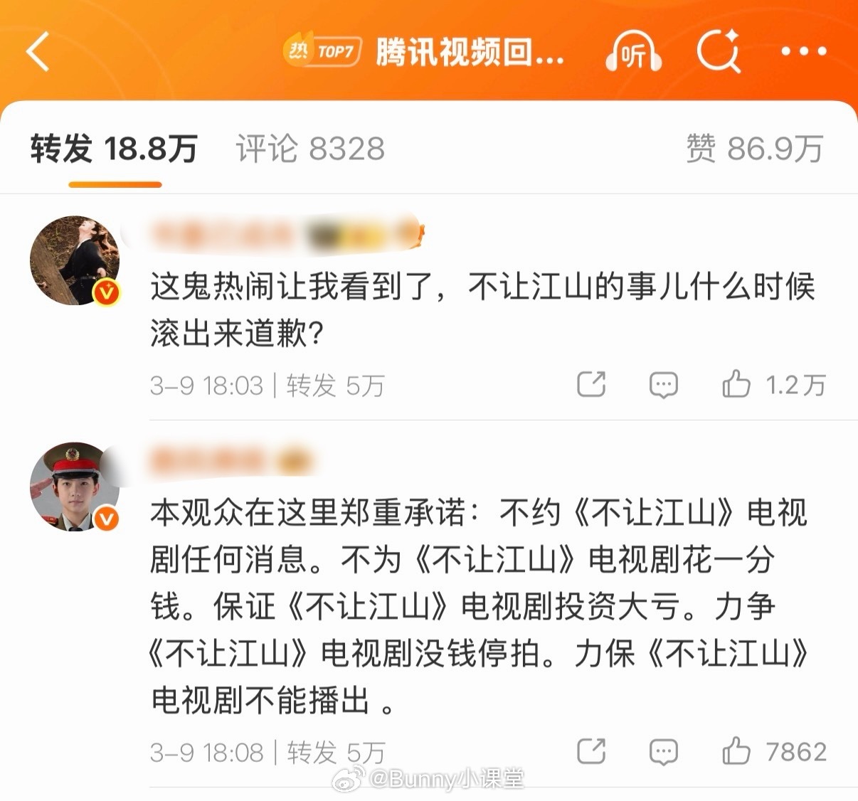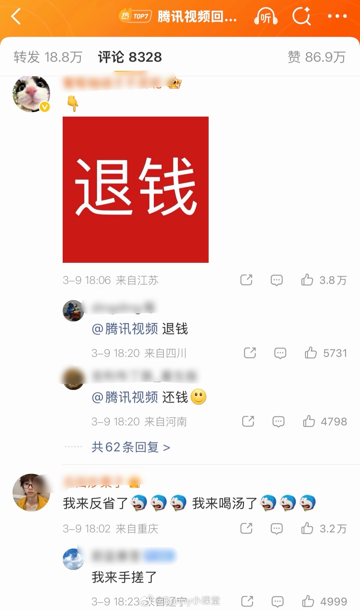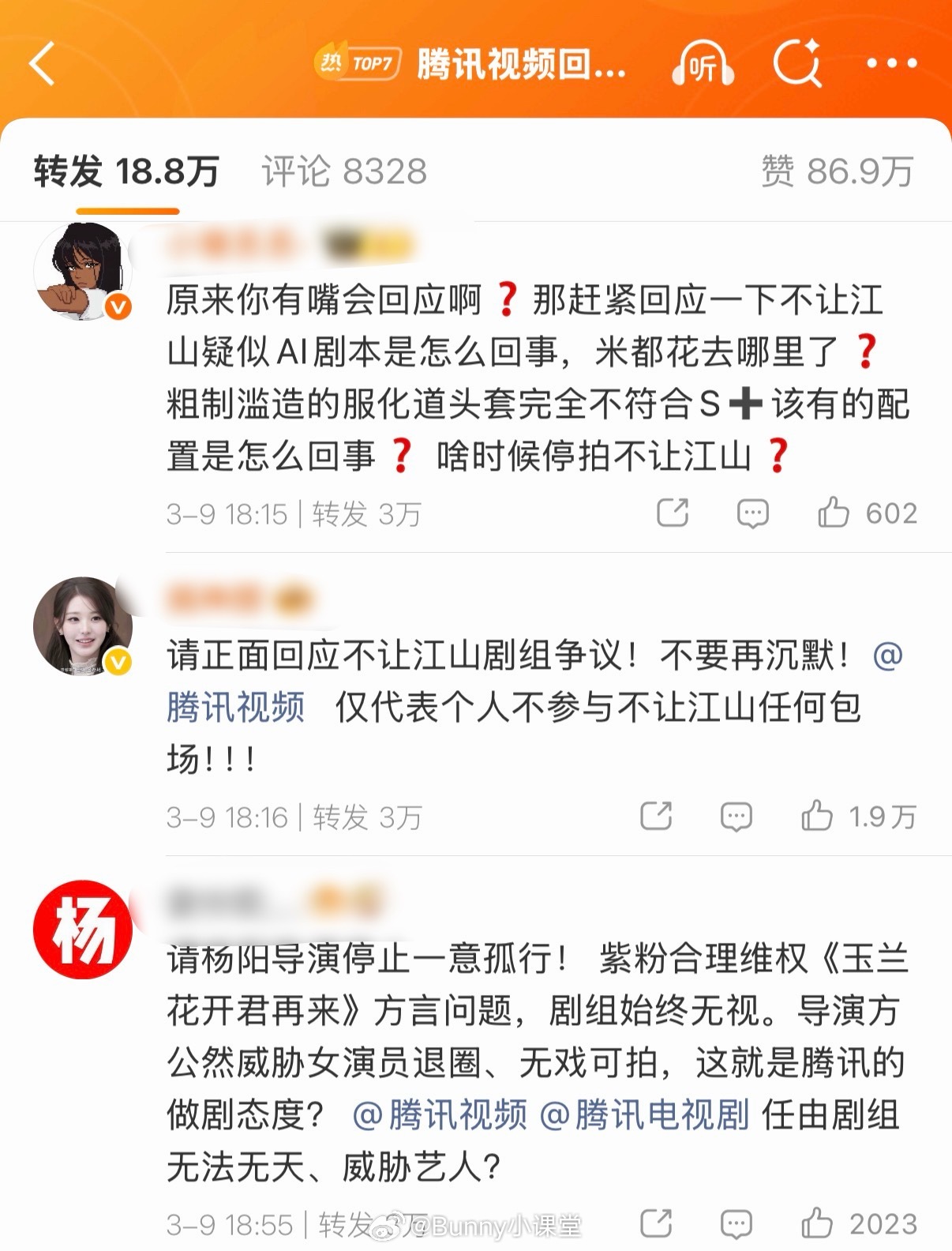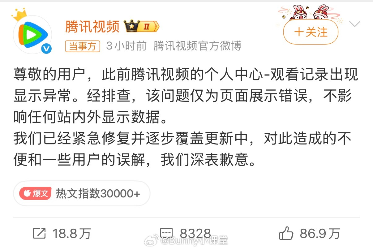 腾讯视频热度最高的一条博文出现了,评论区、转发区全部翻车……🐧本是为了逐玉发文,逐玉粉连前排都没控住,说好的爆剧呢😅腾讯视频回应播放异常