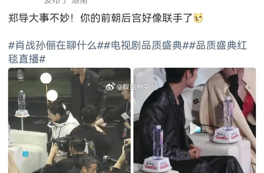 肖战和孙俪突然让网友都懵了:这俩人八竿子打不着啊,咋凑一块儿了?其实是电视剧品质盛典上,俩人坐隔壁,聊得那叫一个热乎。孙俪表情一会儿惊讶一会儿琢磨,大伙儿都好奇他俩唠啥呢。网友还玩梗喊郑晓龙导演:“你的前朝后宫好像联手了!” 为啥这么说?因为俩人都是郑导的“得意门生”——孙俪靠《甄嬛传》的甄嬛成了“郑导亲女儿”,肖战凭郑导的《藏海传》创了央视近五年古装收视纪录,稳稳转型实力派。粉丝还给他俩起了“山甄海味”的昵称,暗合两部剧的缘分。现场图里,肖战穿黑色亮面西装,孙俪搭米白色大衣,面对面聊得特欢,肖战还抬手比划,看着特认真。当天俩人刚分别凭《藏海传》《蛮好的人生》压轴走完红毯,座位还挨着,这地位也是没谁了。网友都开脑洞:“是在交流跟郑导拍戏的经验不?”“甄嬛遇上藏海大人,怕不是要演权谋大戏?” 还有人催郑导赶紧组局,盼着这俩实力派早点合作,看看“强强对决”啥样。